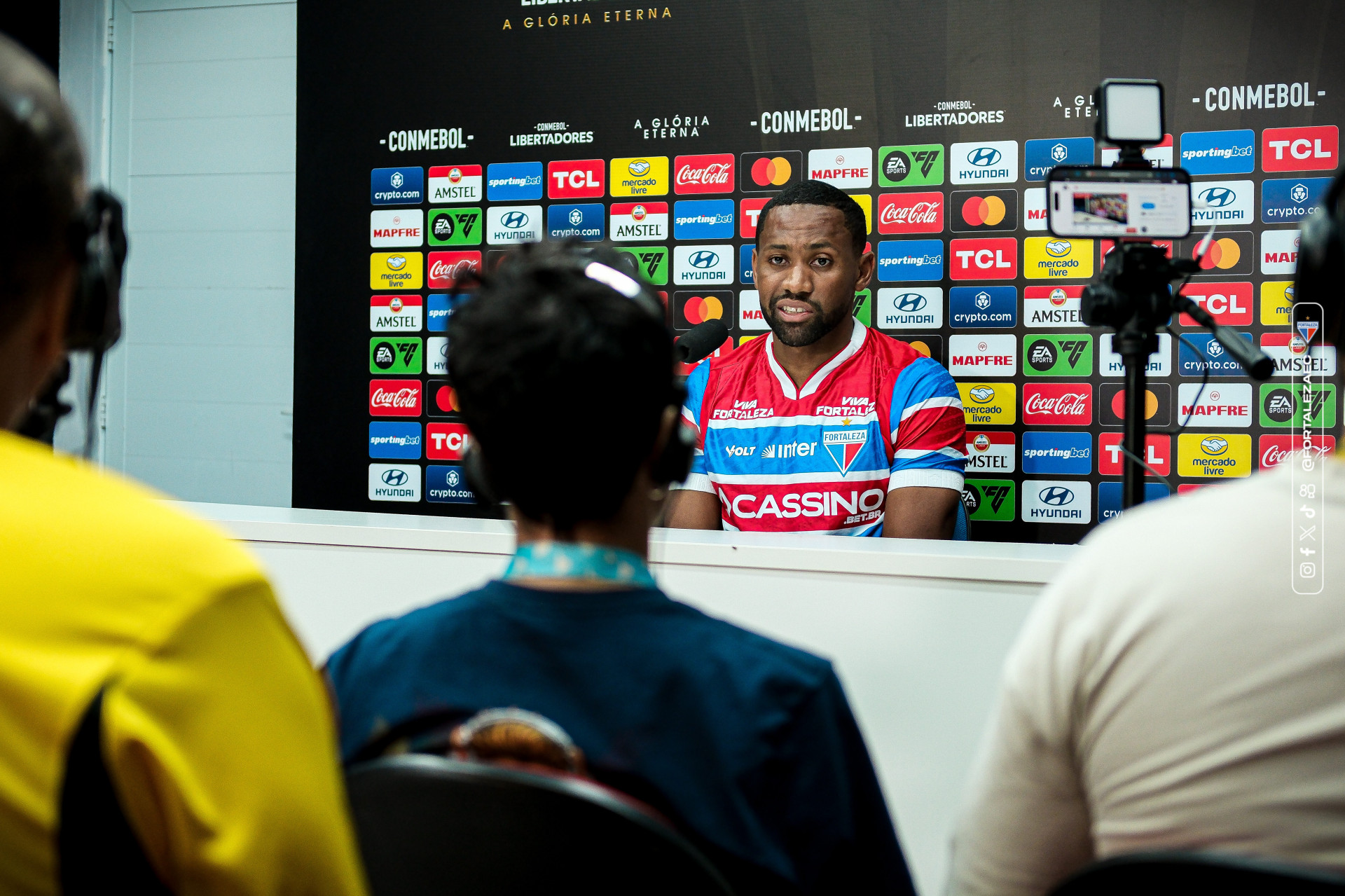 Tinga, lateral-direito do Fortaleza, durante coletiva de imprensa na sede do clube