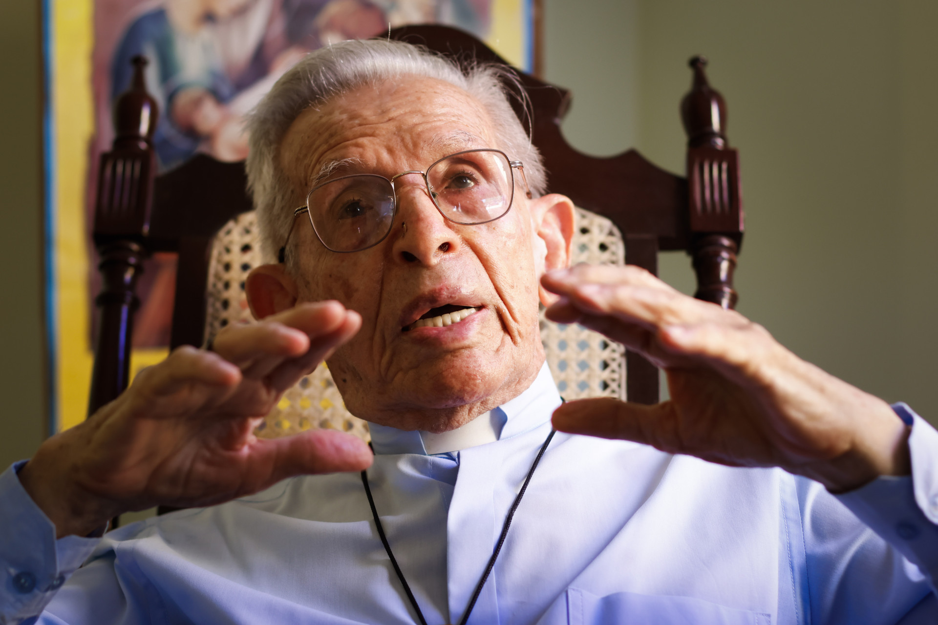 O corpo franzino, envergado pela escoliose, e a voz baixinha, não silente, são sua armadura — mas não para guerras, ele é contra qualquer uma delas. Seu lema na Igreja é "verbum caro factum" ("palavra feito carne", em latim). Mesmo quando o físico já lhe é mais frágil que o mental, segue com planos para a vida. Não há por que esperar, ora! “Me sinto privilegiado”. Ao me despedir, voltei a beijar sua mão. Em agradecimento.