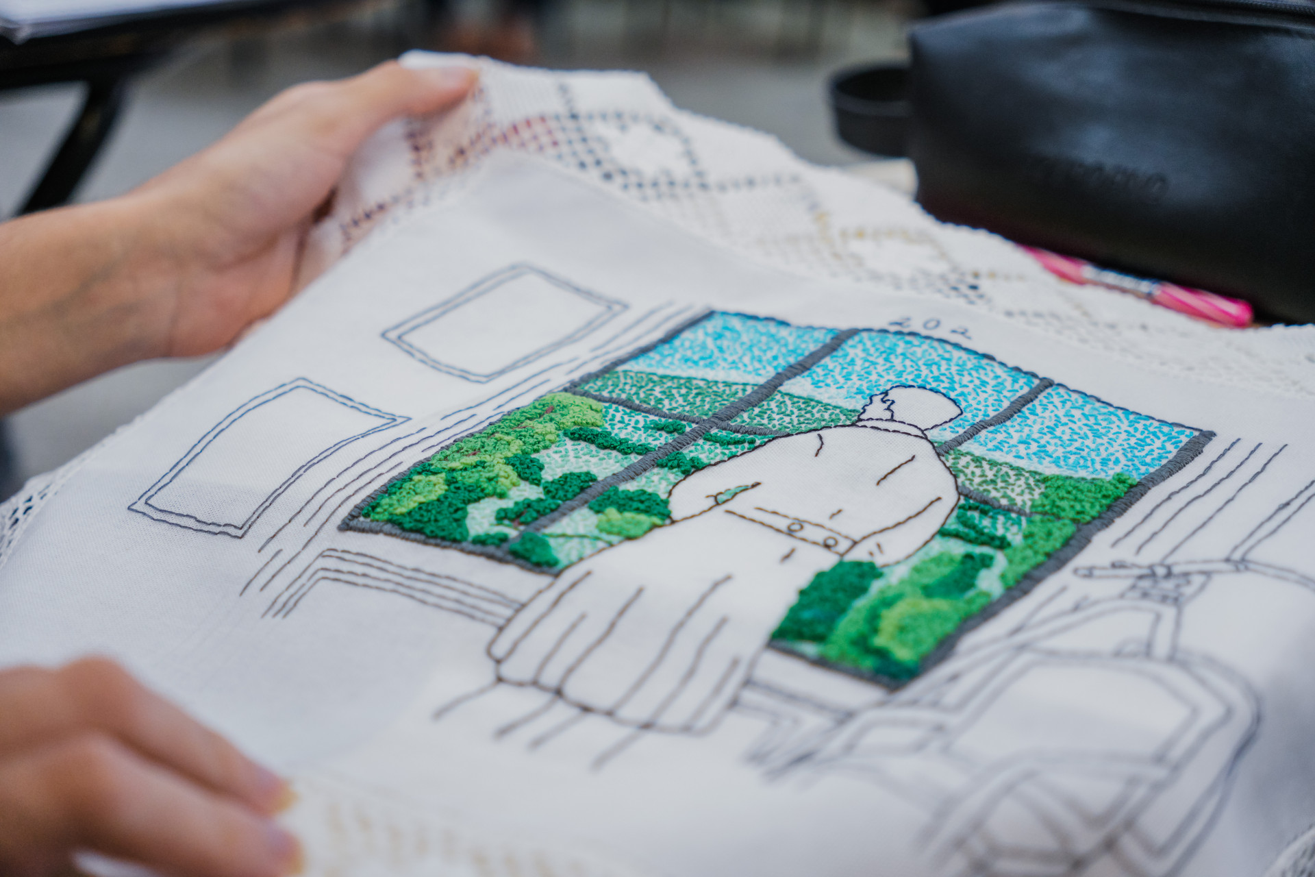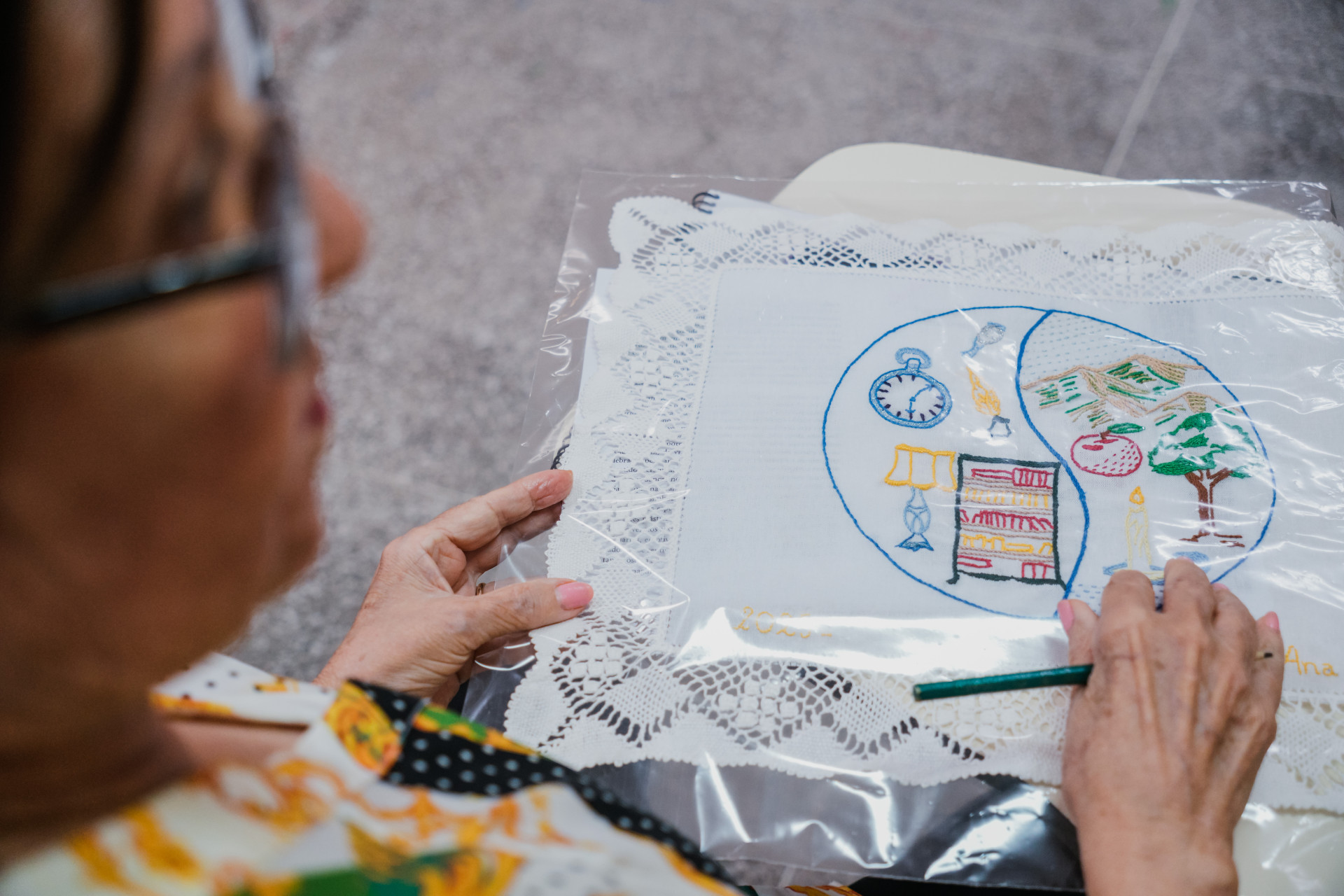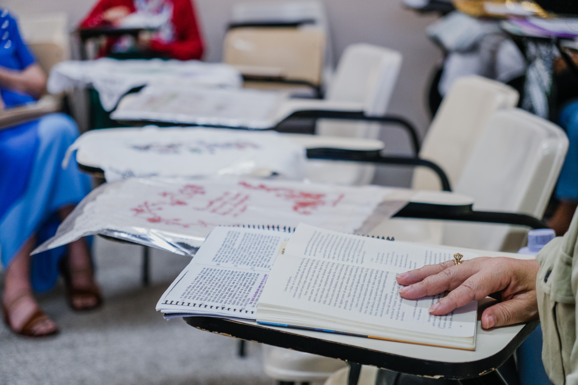 As alunas são jovens senhoras, experientes, da vida acadêmica e profissional ativa ou aposentada, a maternidade e outras vivências tão boas ou difíceis quanto e se realinham no momento próprio, particular. O bordado ganha protagonismo. Uma e mais uma e mais delas confirmam o ambiente terapêutico que se cria, partilha e autoconhecimento. E entre elas há quem nem saiba desenhar ou bordar. Mas o trabalho final surge e encanta. O último concluído foi da obra "A Cidade e as Serras", de Eça de Queiroz, de 1901. A cada final de curso sempre são programadas exposições. A do livro de Guimarães Rosa ainda não tem data prevista.