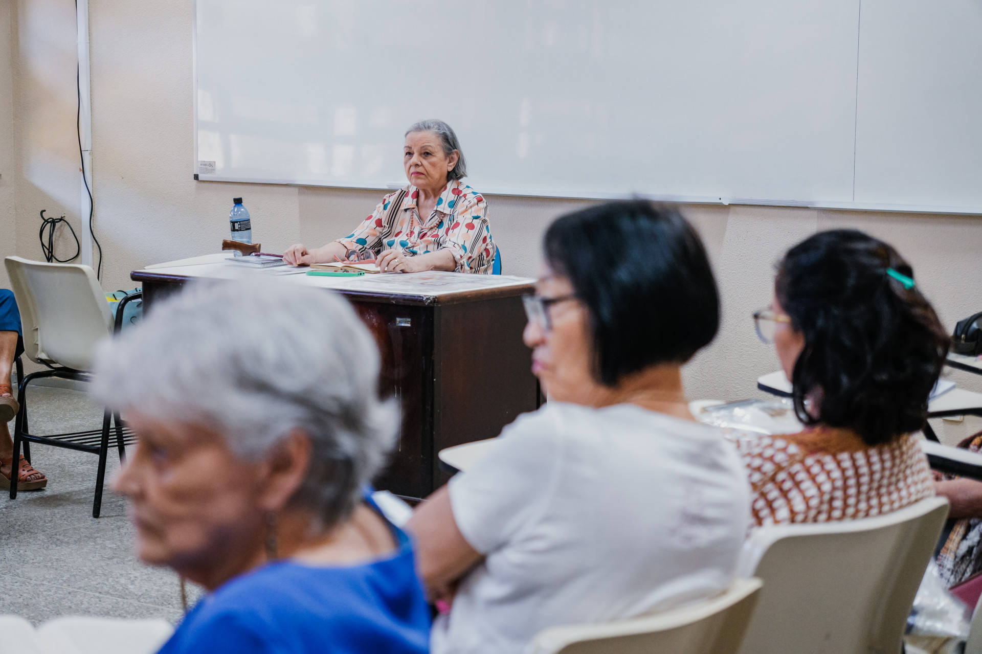 A coordenadora, fundadora da ideia, segue sendo a professora Neuma Cavalcante. Em seus 83 anos, aposentada, depois de uma vida dedicada à educação, ainda se mostra cativada pelo que tem sido poetizado nessa década e o porvir. “Eu me emociono muito com cada aula. Parece até uma terapia, elas vão fundo lá na infância. É um conforto para mim, aposentada, fazer alguma coisa pelas pessoas. Eu digo ver a literatura como uma coisa que possa trazer algo a mais, além do prazer, além de tudo que ela pode dar”. O bordado foi um aprendizado de infância, de quando era da idade de Miguilim e a mãe lhe fazia bonecas de pano. Os livros estavam ali na mesma prateleira de afeição.