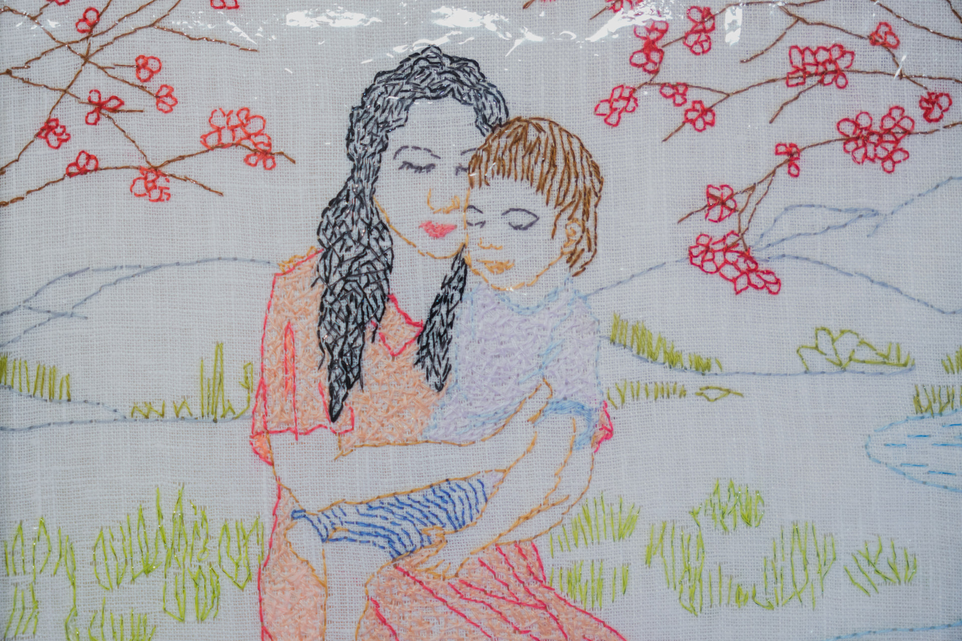 A aluna Lúcia Galvão já bordou Miguilim abraçado à mãe