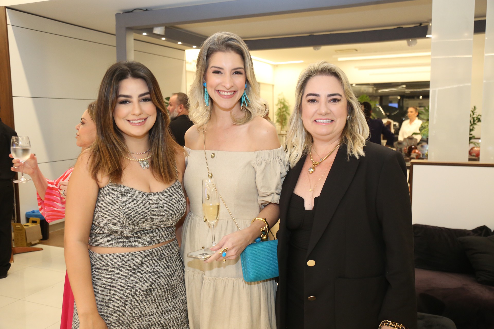 Presidente do Lide, Emília Buarque, vice-presidente da Aço Cearense, Aline Ferreira, influenciadora de moda Paulinha Sampaio responderam às perguntas conduzidas, com total desenvoltura pela anfitriã, que se revelou uma expert em talk show.