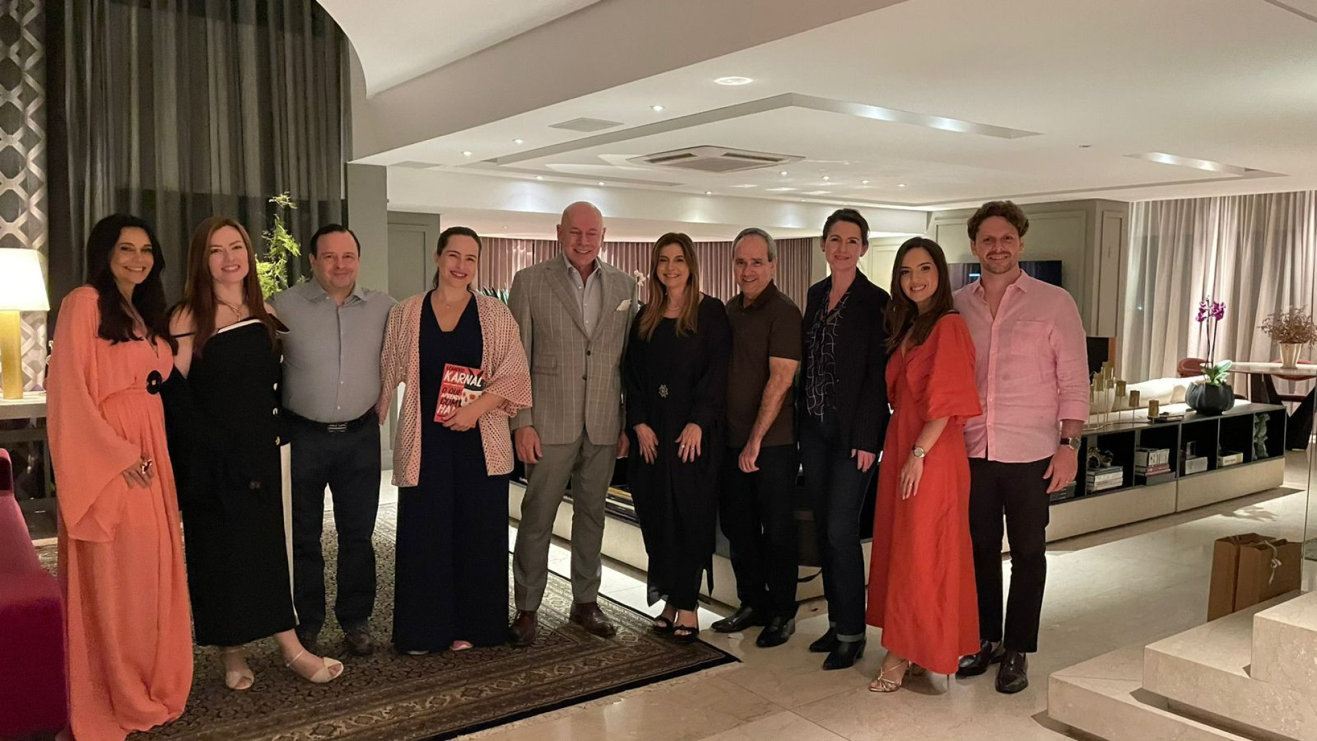 Presidente do Lide Ceará, Emília Buarque, e o marido e empresário Sérgio Rezende receberam grupo amigo, em seu endereço, para jantar tendo, como presença de destaque, o respeitado e influente historiador, professor, escritor, pensador e apresentador Leandro Karnal.