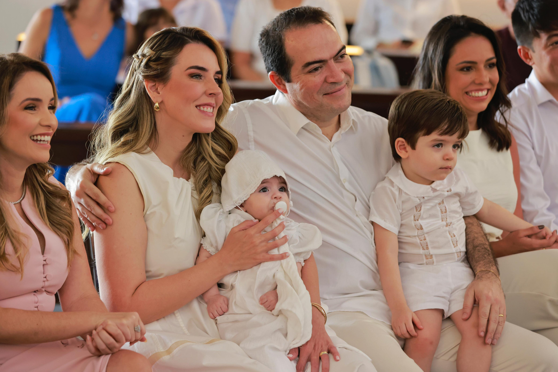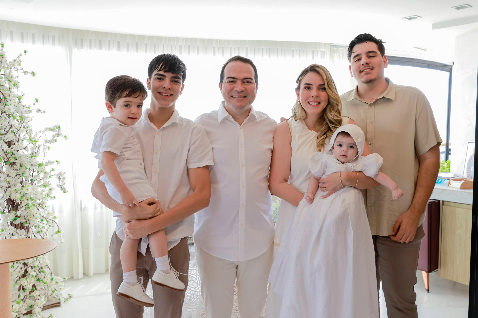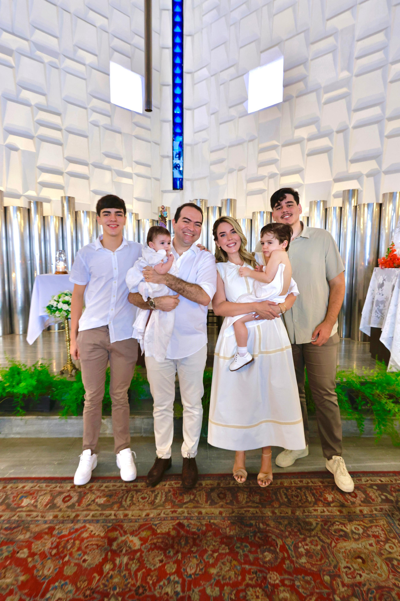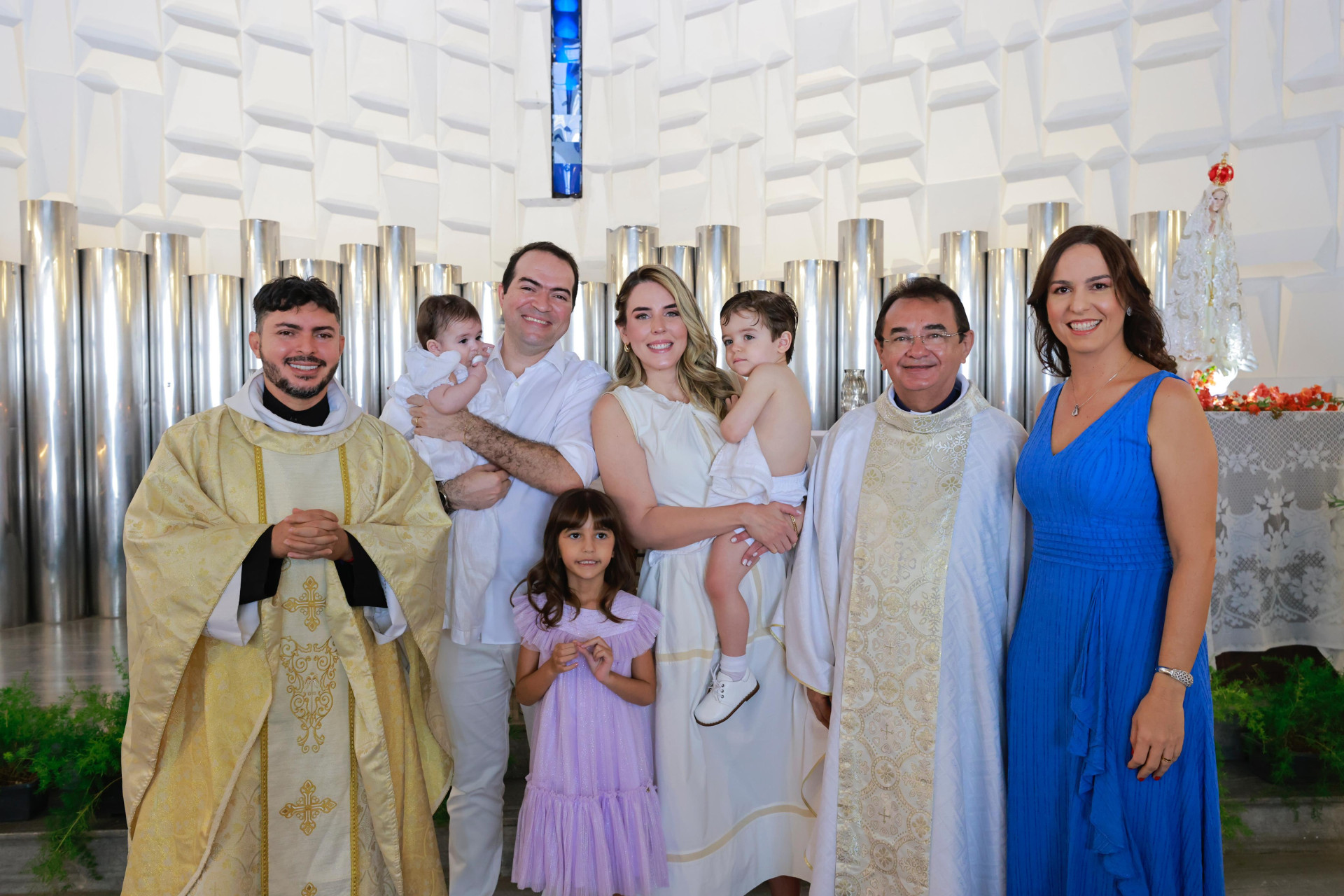 Marcelo Paz, CEO do Fortaleza EC SAF, e Jade Romero, vice-governadora do Estado do Ceará, reuniram a família, na Capela do Palácio da Abolição, para a celebração dos batizados dos filhos Mateo e Marcela. Também abençoando os pequenos, os irmãos mais velhos, Marcel Paz e Igor Romero. Frei Gabriel e padre Sales conduziram o ato religioso, acompanhado pela primeira-dama do Estado, Lia de Freitas. Registros...