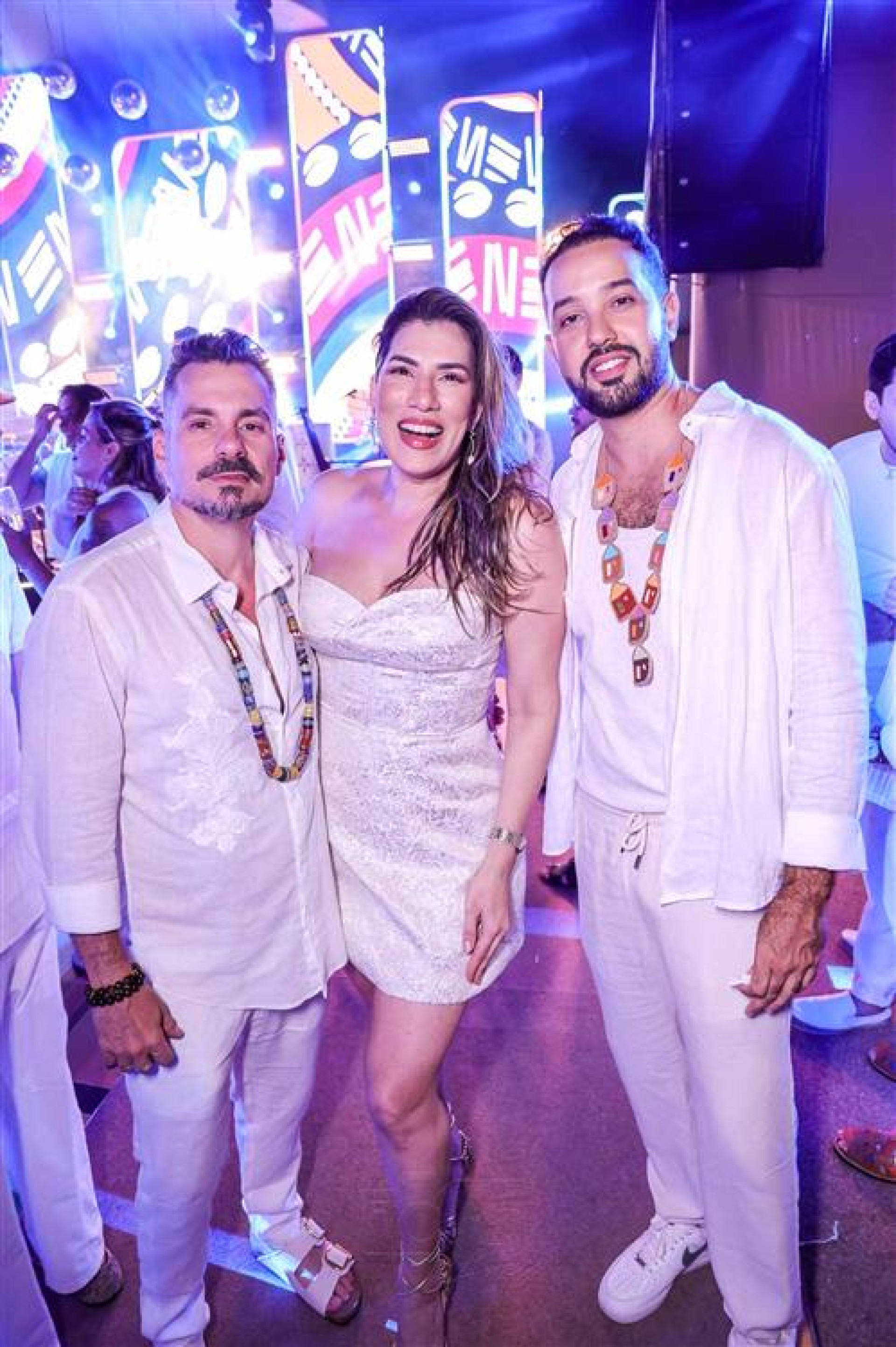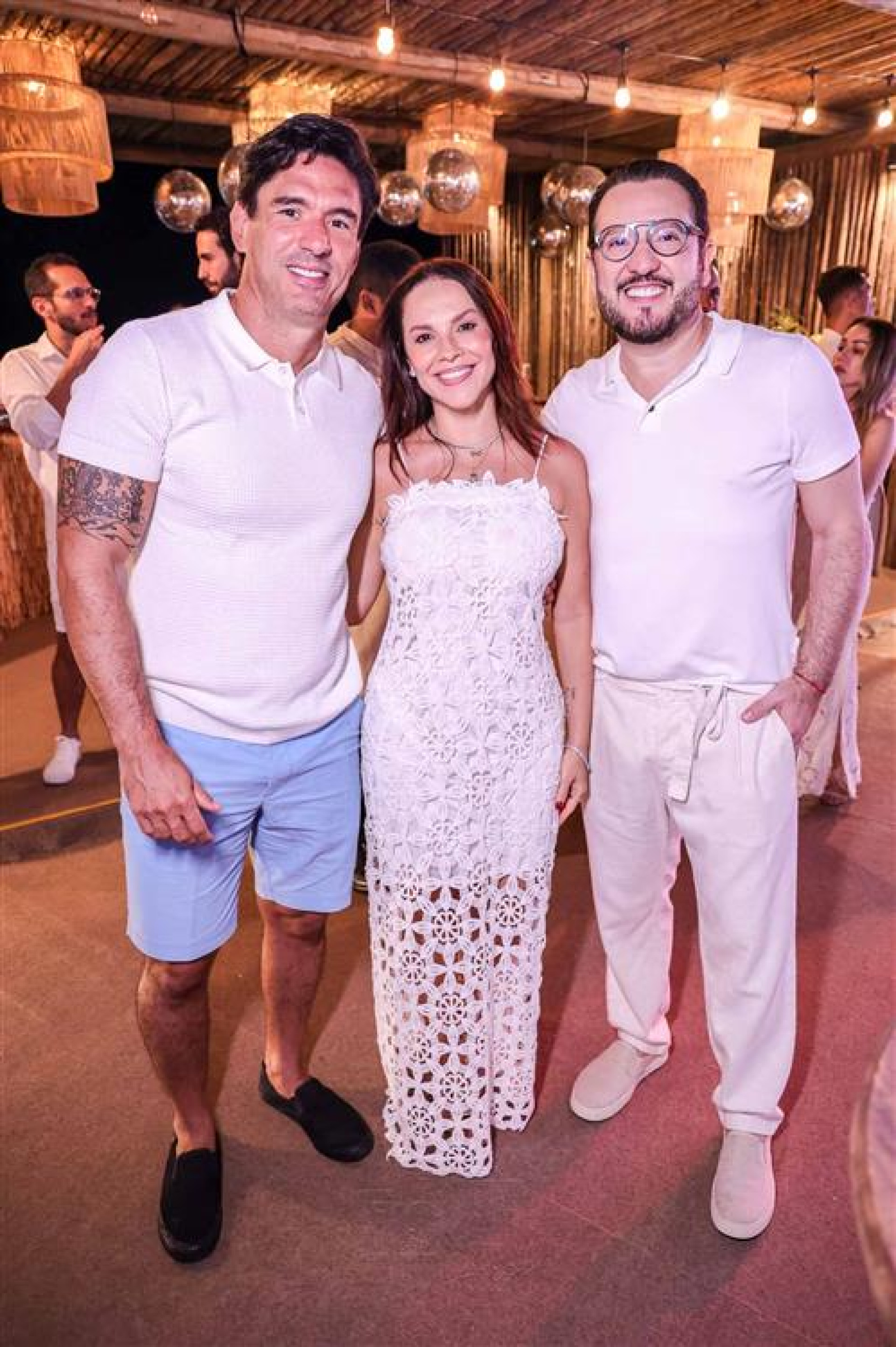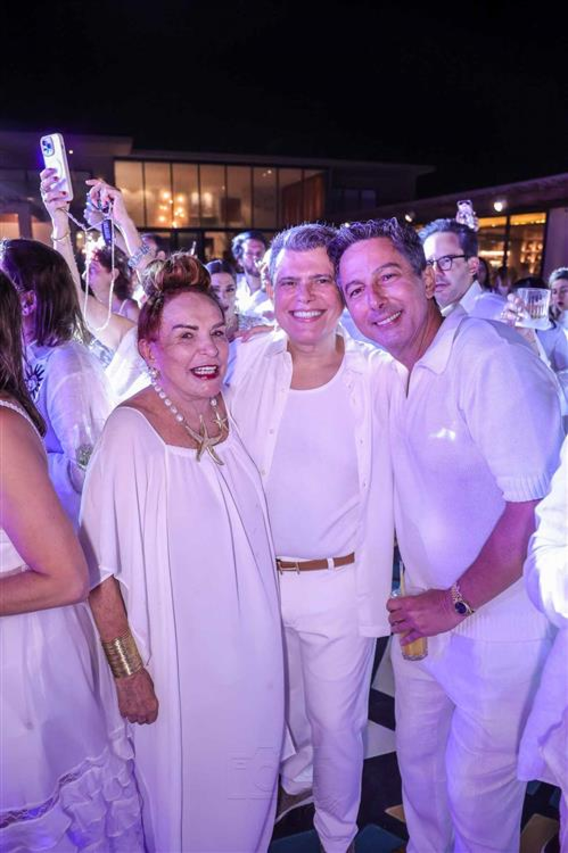 Marcado para o fim da tarde, evento pediu dress code total branco, liberando a criatividade de quem não se conforma em, simplesmente, colocar uma camisa ou um vestido na cor da paz e do Réveillon, precisa ter um "plus" de estilo, a começar por Denise Bezerra, esposa da aniversariante, com camisa branca bordada de símbolos do Nordeste.