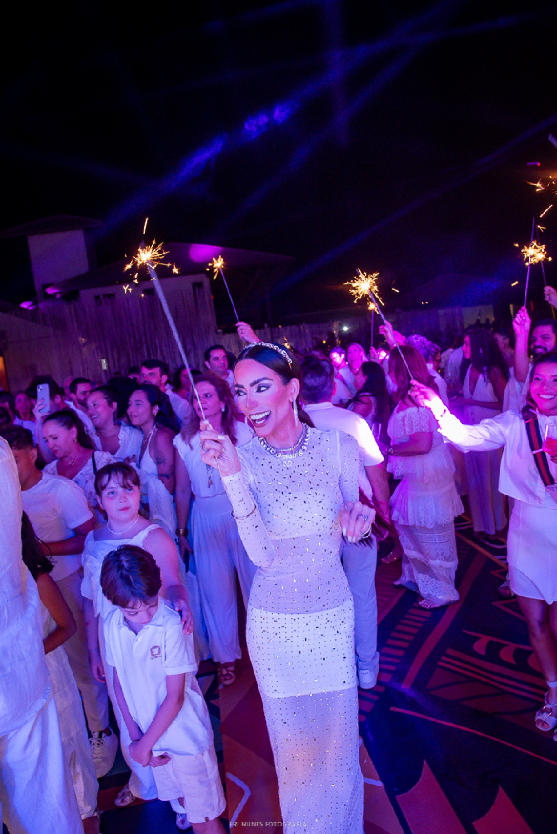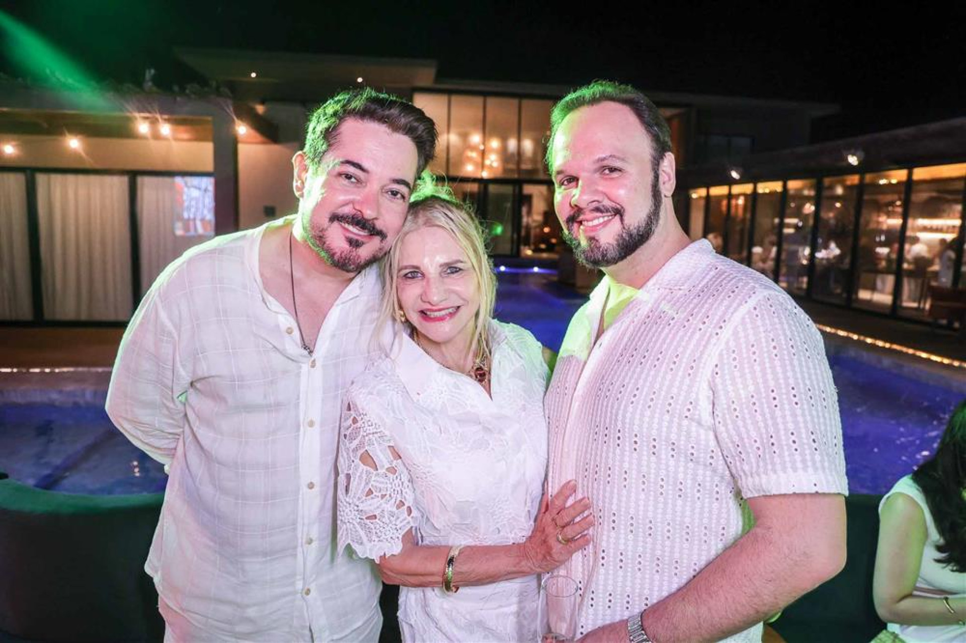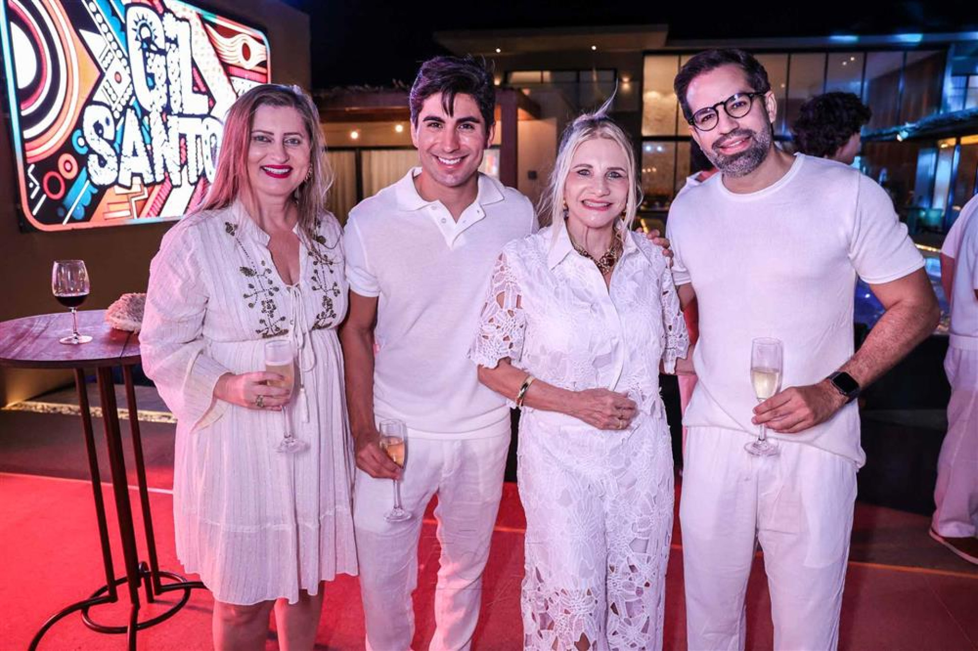 Marcado para o fim da tarde, evento pediu dress code total branco, liberando a criatividade de quem não se conforma em, simplesmente, colocar uma camisa ou um vestido na cor da paz e do Réveillon, precisa ter um "plus" de estilo, a começar por Denise Bezerra, esposa da aniversariante, com camisa branca bordada de símbolos do Nordeste.
