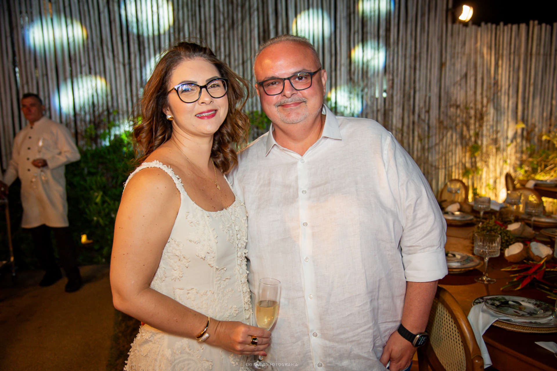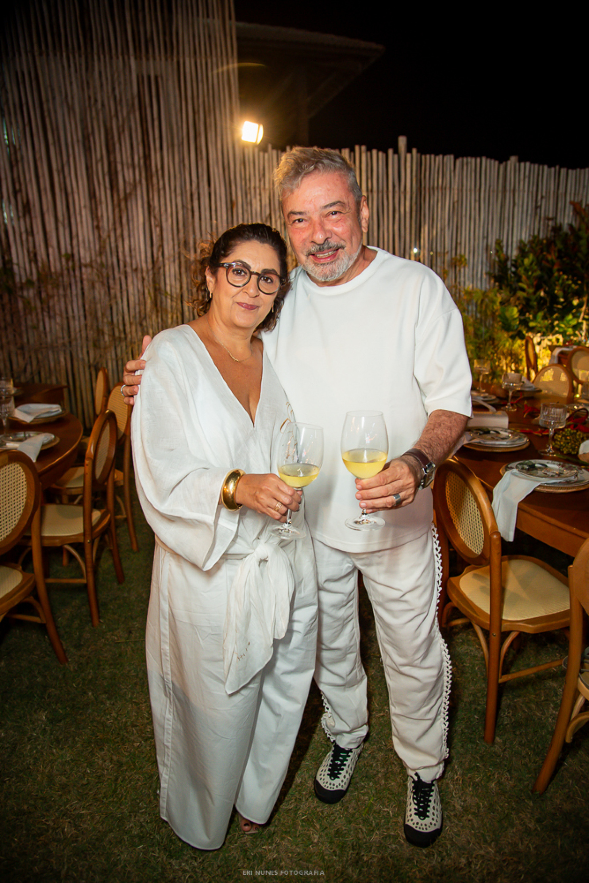Muito alinhados, de linho, Ivana Bezerra e Alexandre Rangel. Responsável por toda a produção e cerimonial do evento, Roberto Alves (Celebre), com seus broches, que já se tornaram uma marca registrada.