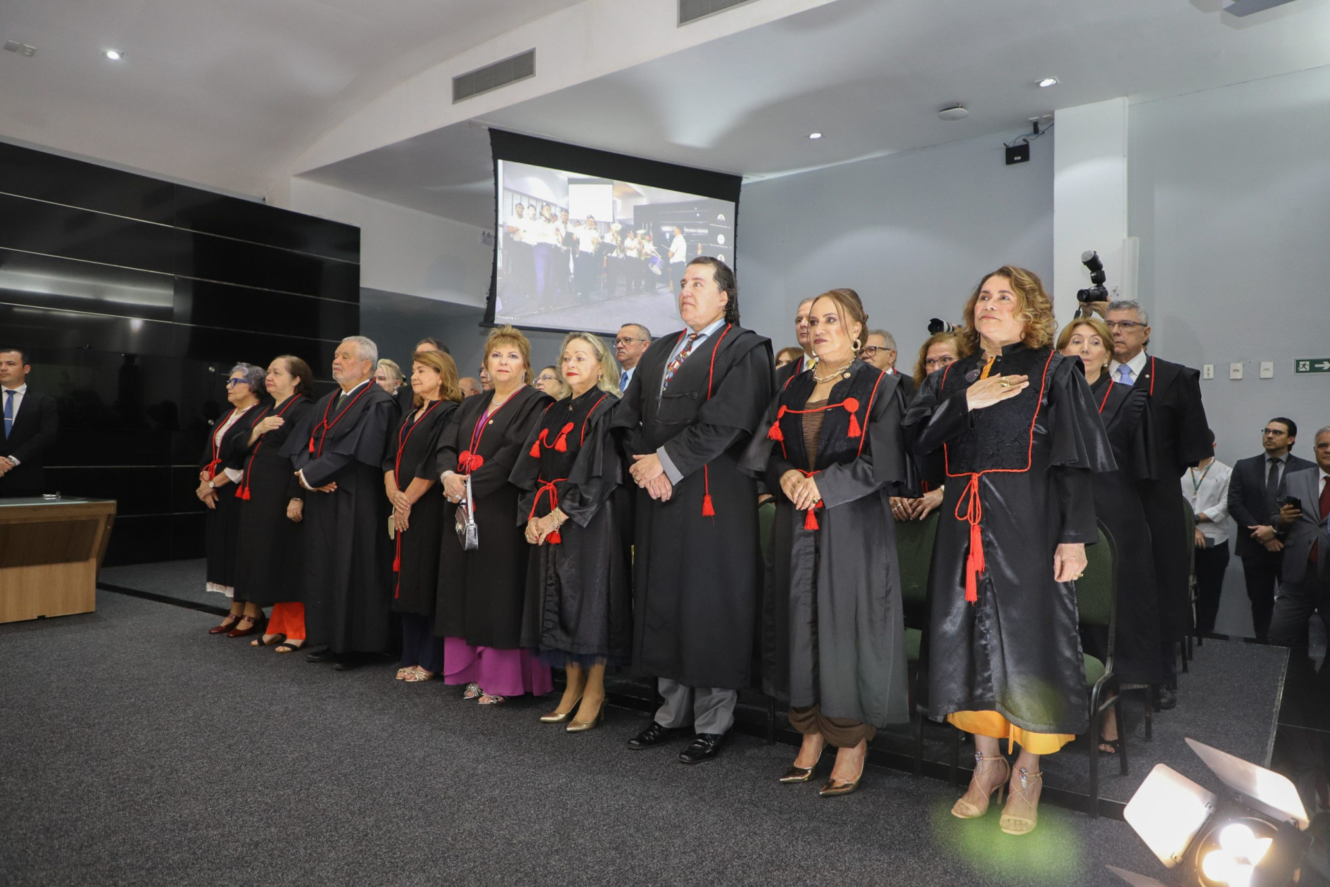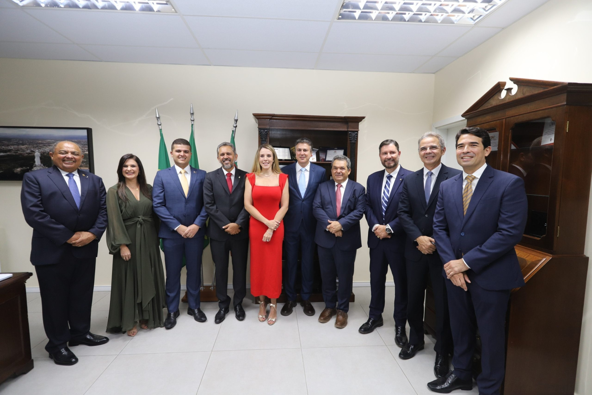 Governador Elmano de Freitas; ministro da Educação, Camilo Santana; vice-governadora Jade Romero; presidente da Assembleia Legislativa, Romeu Aldigueri; presidente do Tribunal de Justiça do Ceará (TJCE), Heráclito Vieira; e o ministro do STJ Teodoro Silva Santos encabeçaram a lista das poderosas presenças.