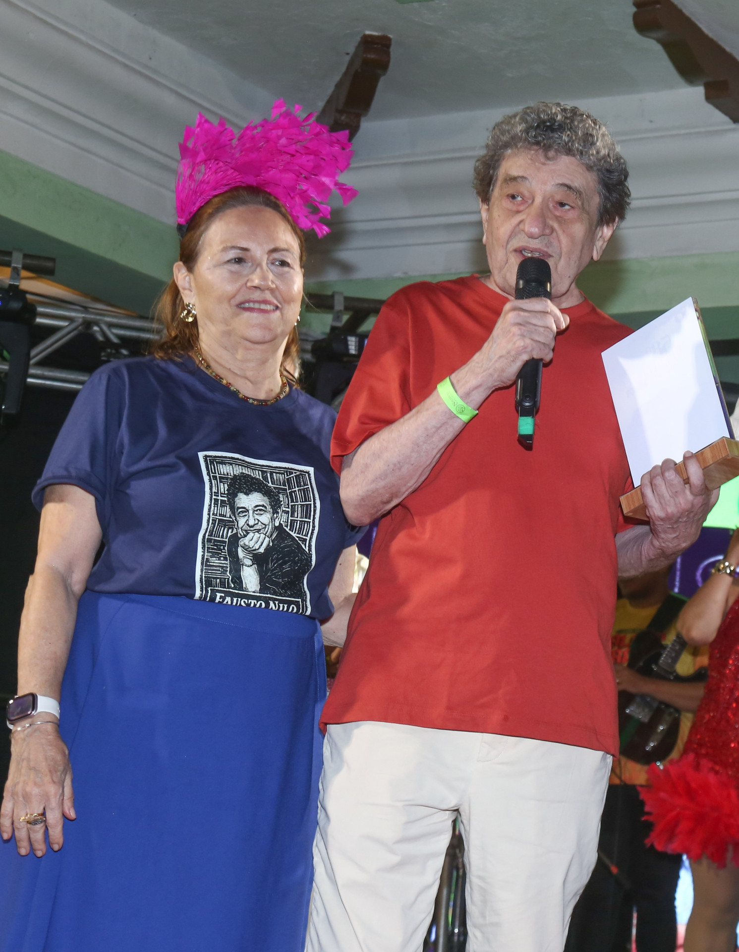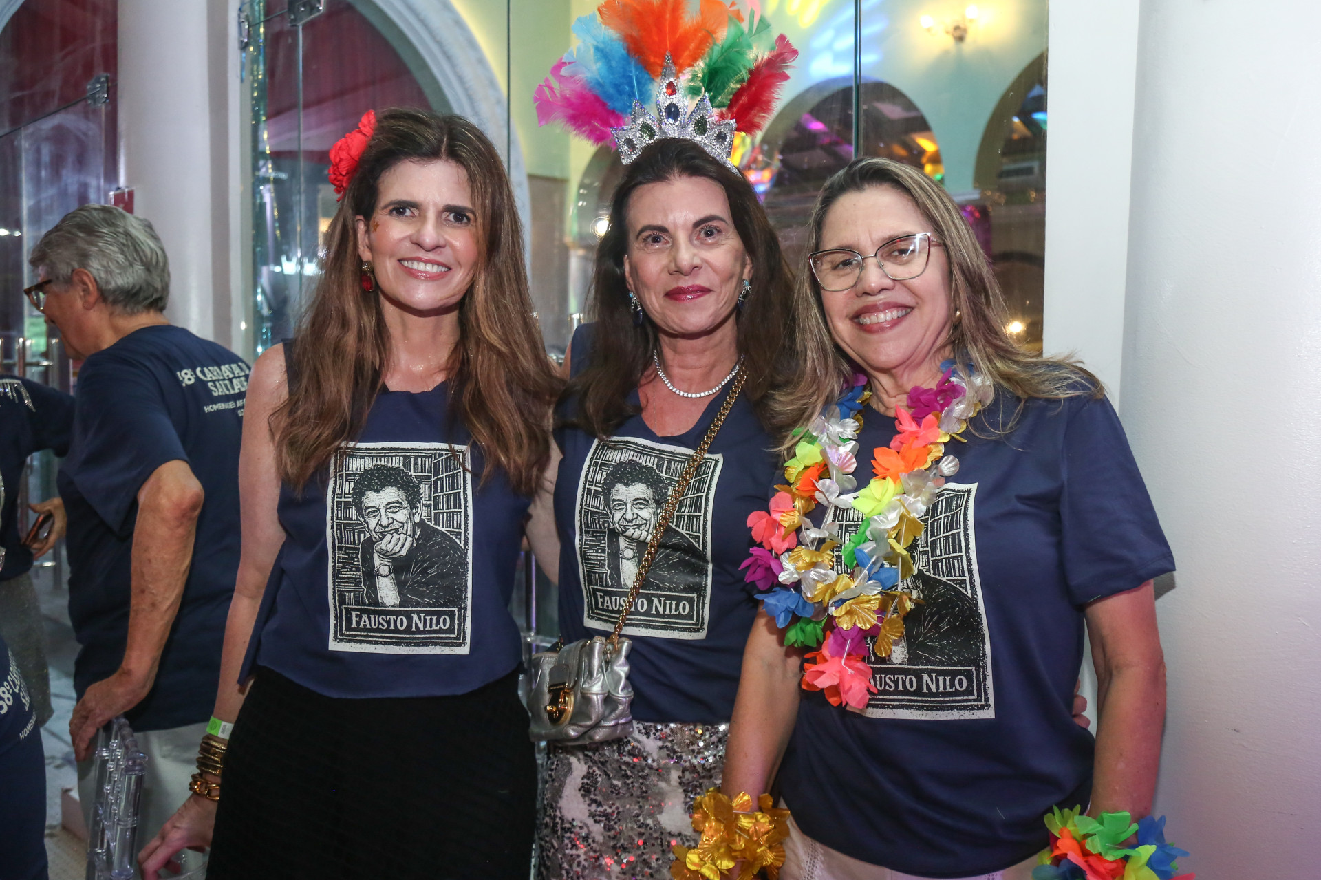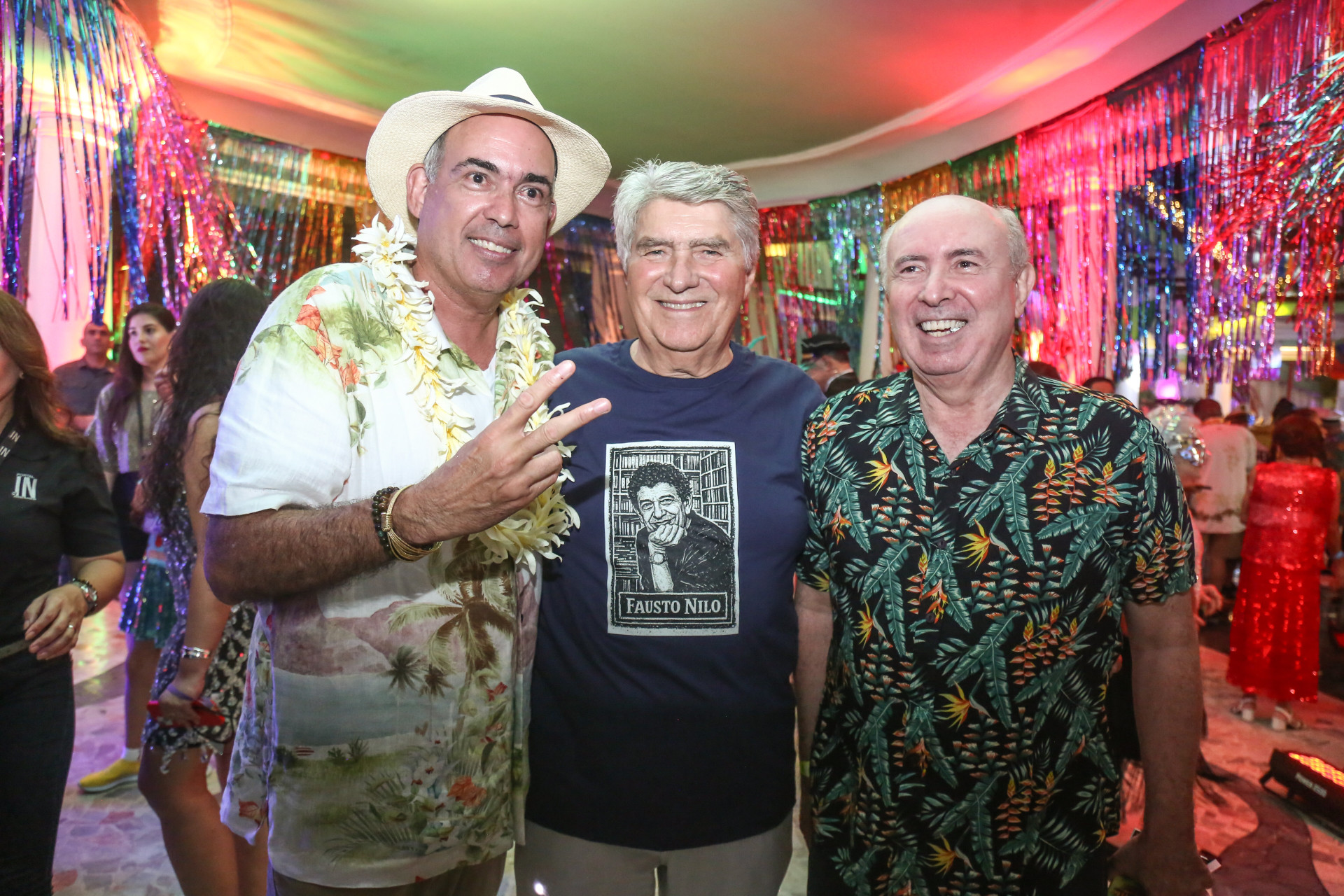 Espaço reservado para Fausto e amigos funcionou como "privê" ao lado do salão principal, onde se via Amarílio Macêdo e Patrícia, Sandra Pinheiro e Pedro Ferreira, Fábio Campos e Luciana, Jocélio Leal, Silvia Góes e Giovanni Pimentel, dentre outros nomes. Trajavam t-shirt marinho com gravura do autor de "Bloco do Prazer", "Chão da Praça", "Coisa Acesa", "Zanzibar"....
