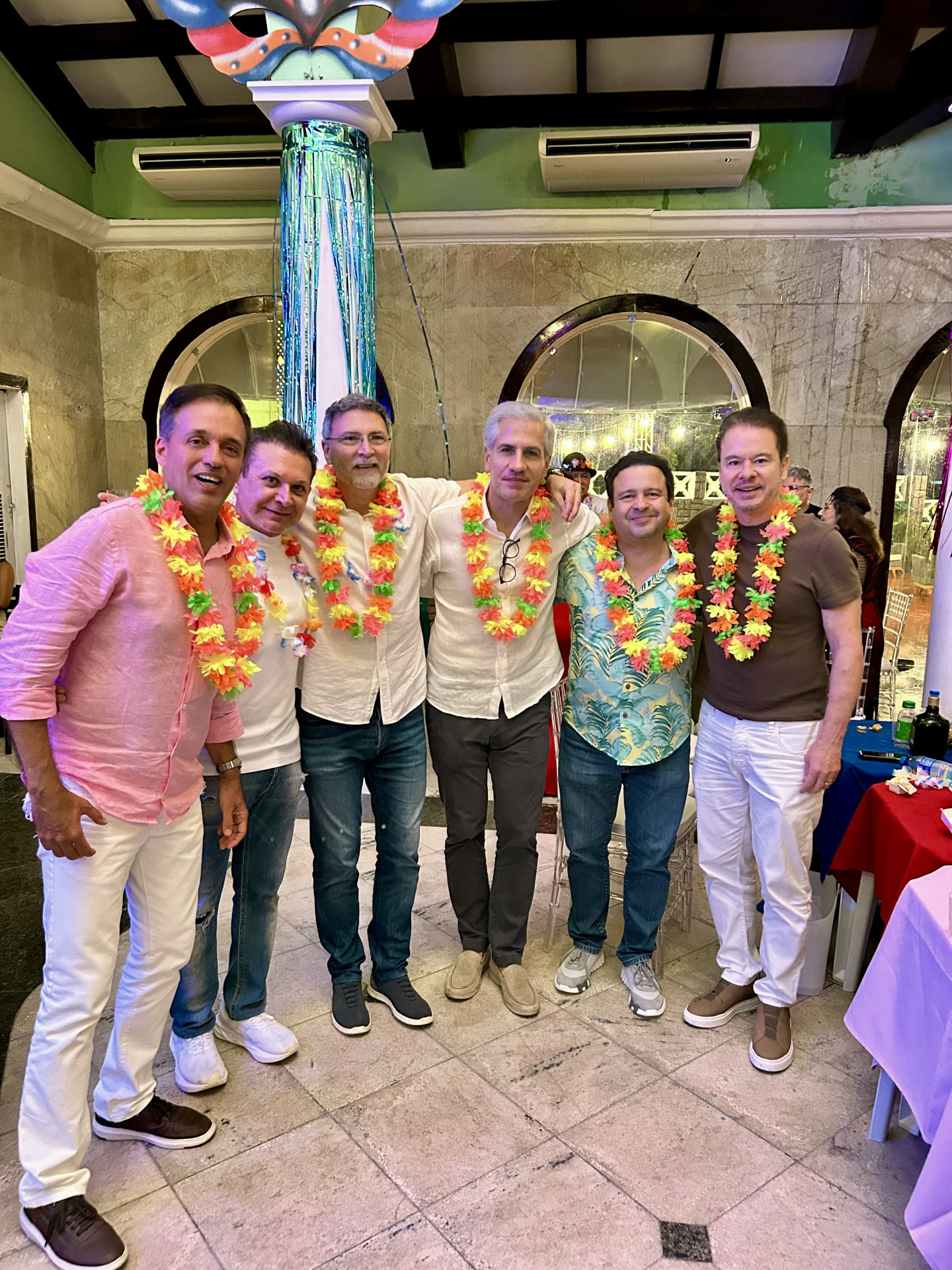 Turminha de chiques compôs mesa no Salão Nobre, área climatizada, a convite de Igor Queiroz Barroso e Aline, que me falavam da importância de manter a tradição do baile e do repertório de marchinhas e frevos frente a tantas influências de outros ritmos que vêm ganhando espaço nos fevereiros, como é o caso do onipresente - e mais do que insisitente - sertanejo.