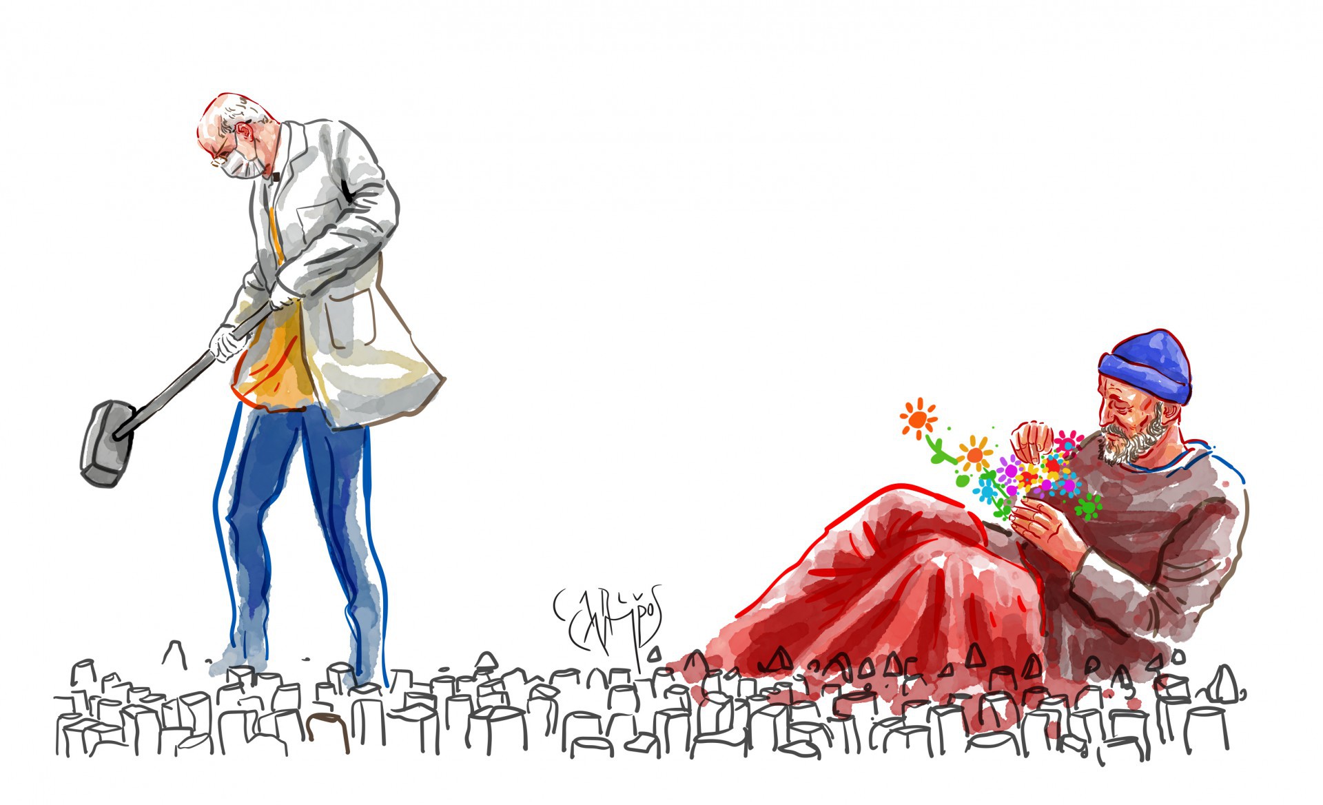 Padre Lancellotti dá a visão. Gente de rua não é anjo, também não é demônio e precisa dormir e escapar do frio. Num banco de praça ou na calçada que vai amanhecer fedendo a mijo e pronto.