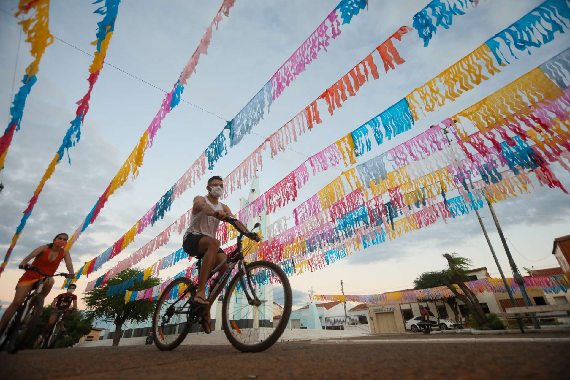 Aboletado num banco da praça enfeitada com bandeiras de São João, Raimundo então baixa a máscara e acrescenta: “Isso aqui foi milagre, foi muita reza”.