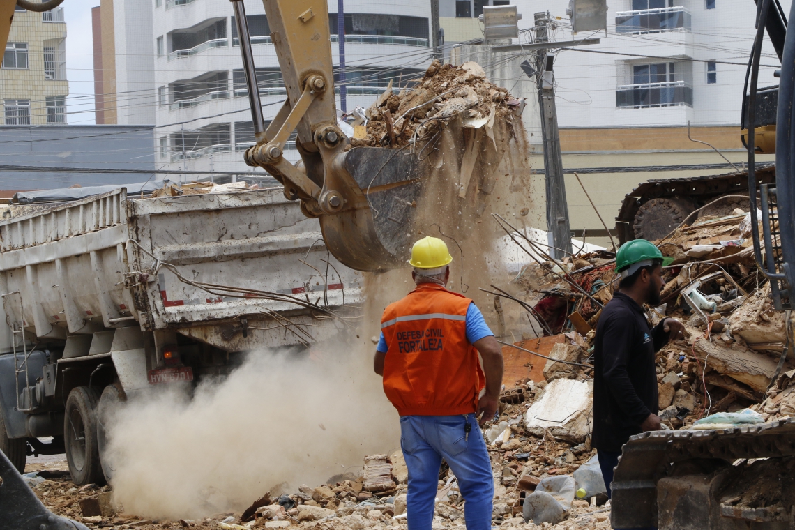 Os voluntários que ficaram na região para atender às necessidades dos trabalhadores que retiram os entulhos estão pedindo doações de alimentos. Contato: Fábio Menezes (85) 99642 2530.