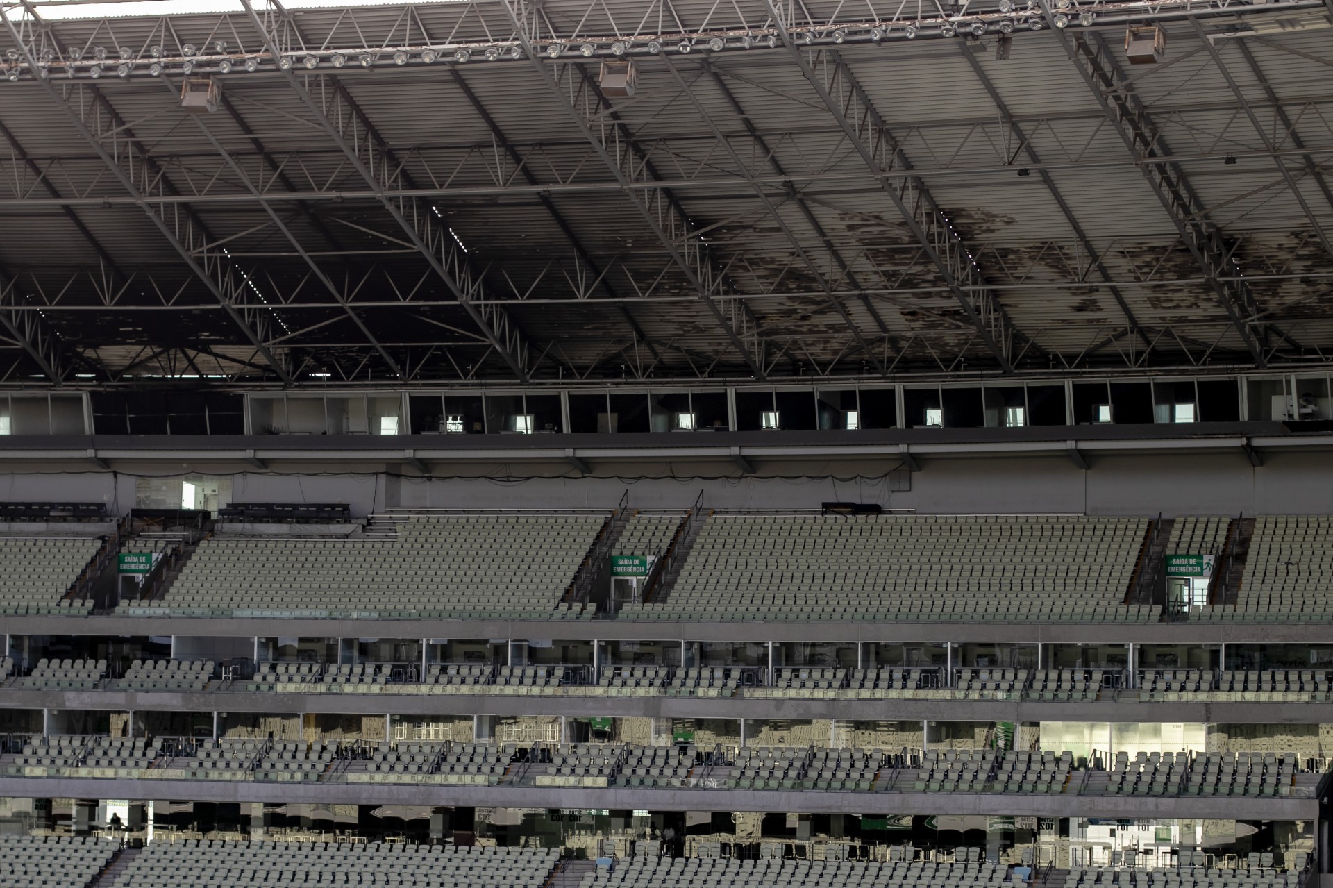 Sem empresa para manutenção da estrutura há mais de um ano, a Arena Castelão teve o segundo curto-circuito em ar-condicionados em 80 dias. Na manhã de ontem, um princípio de incêndio foi registrado no setor de aquecimento dos jogadores. Conforme a Secretaria do Esporte e Juventude (Sejuv), que faz a gestão do estádio, a licitação para a manutenção da estrutura da Arena Castelão foi finalizada e agora encontra-se na fase de contratação da empresa vencedora.