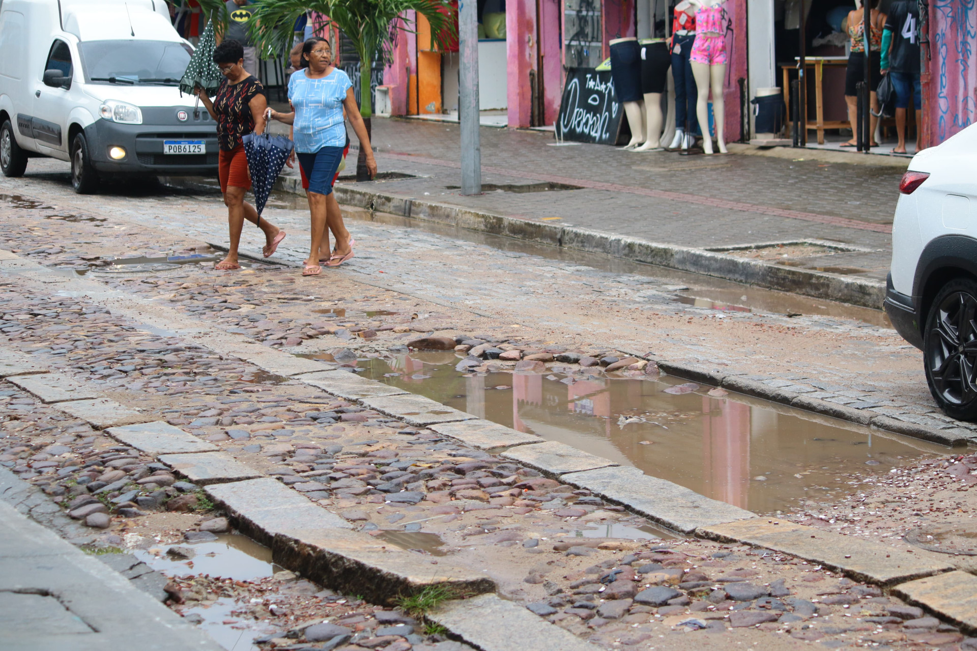 O desnível da pavimentação histórica da rua impacta no tráfego de condutores de veículos, assim como dos comerciantes e consumidores do polo comercial, que comporta boxes de vestuários no entorno e comércio de ambulantes na via. Há 19 anos atuando como comerciante na rua, José Romão, 48, afirma que o poder público precisa retomar os cuidados com o local.