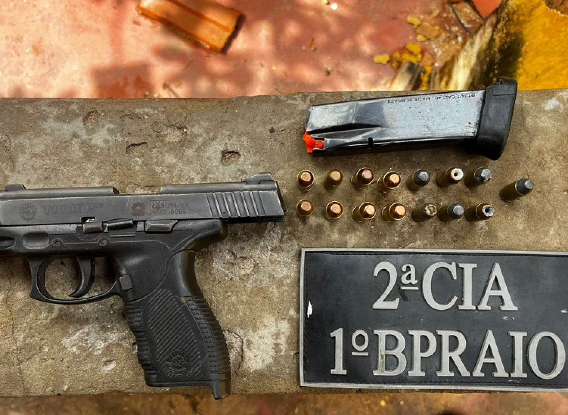 Na ação, a PM apreendeu uma pistola Taurus, modelo PT 100, com a numeração suprimida, além de seis munições de calibre .40. A arma é de propriedade da PM do Pará.