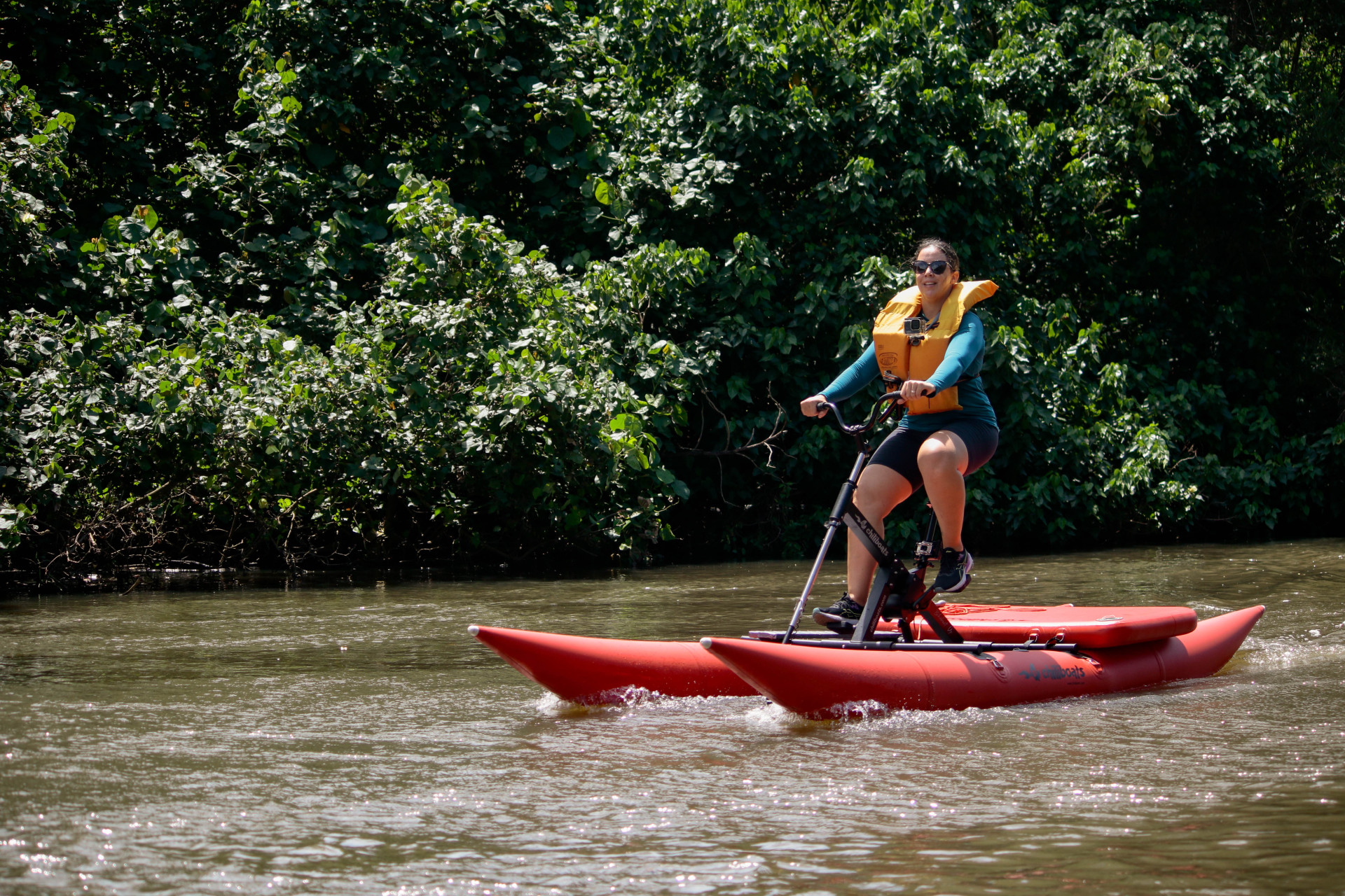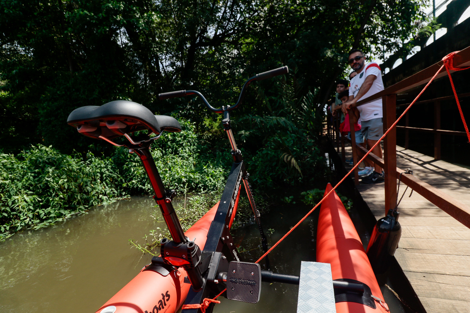(Foto: Samuel Setubal)FORTALEZA,CEARÁ, BRASIL,06-04-2025: Passeio de barco no Parque do Cocó, agora forcene a bicicleta aquática, que anda livremente pelo rio. (Foto: Samuel Setubal/ O Povo)