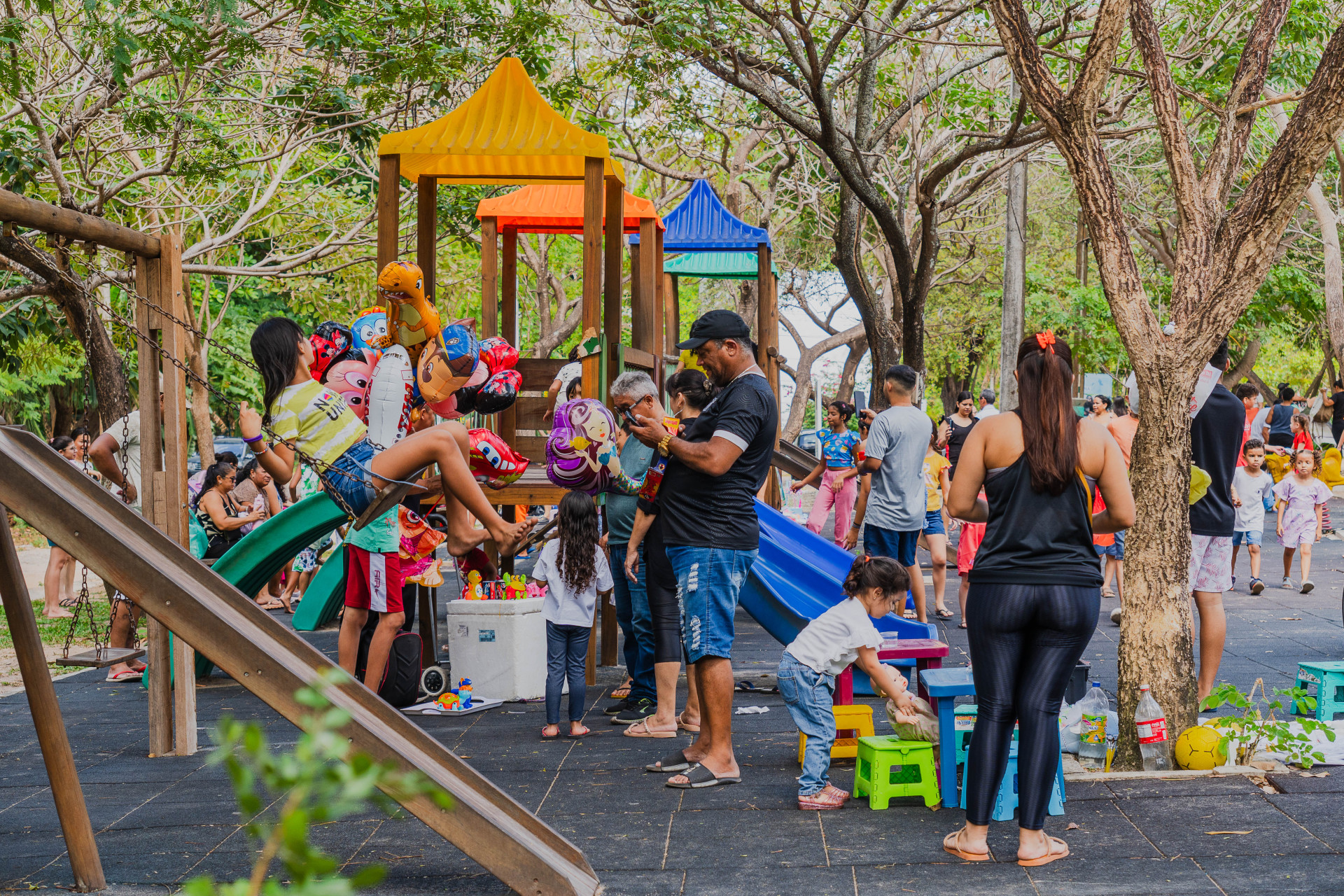 Segundo a auxiliar de serviços gerais Evilene, 47, a movimentação começou cedo. Ela costuma ir ao parque com o neto Gael Vinicius, 4, e as filhas Mirna, Marina e Mariana, e pontuou que, mesmo chegando por volta das 7 horas, já encontrou uma quantidade significativa de pessoas.
