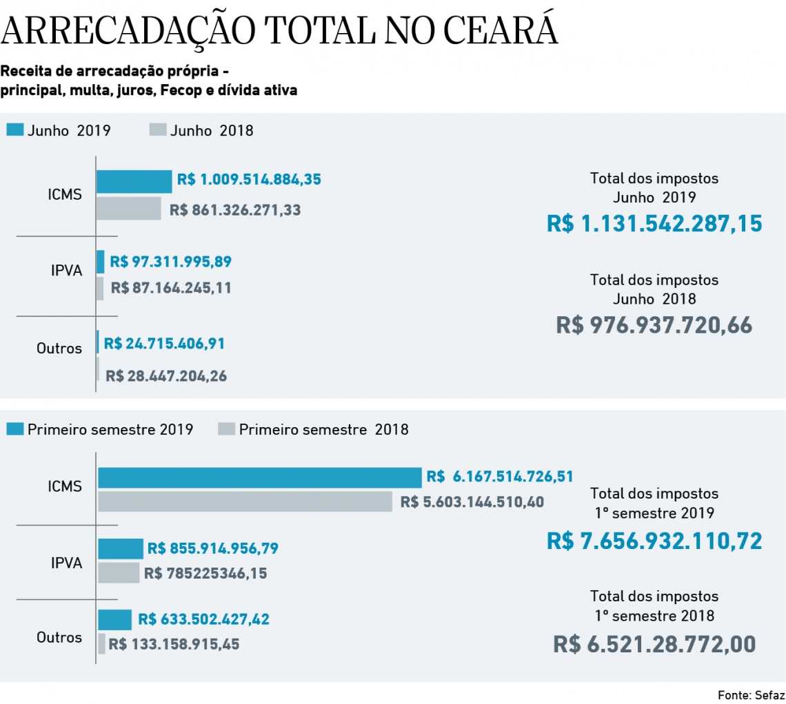 A ingerência sobre a alíquota estadual do ICMS pode ser diferencial negativo da proposta, segundo a titular da Secretaria da Fazenda do Ceará (Sefaz-CE), Fernanda Pacobahyba. Os impostos arrecadados equivalem a três quartos da Receita Corrente Líquida (RCL) do Estado. Destes, somente em junho, 89,2% vieram do ICMS.