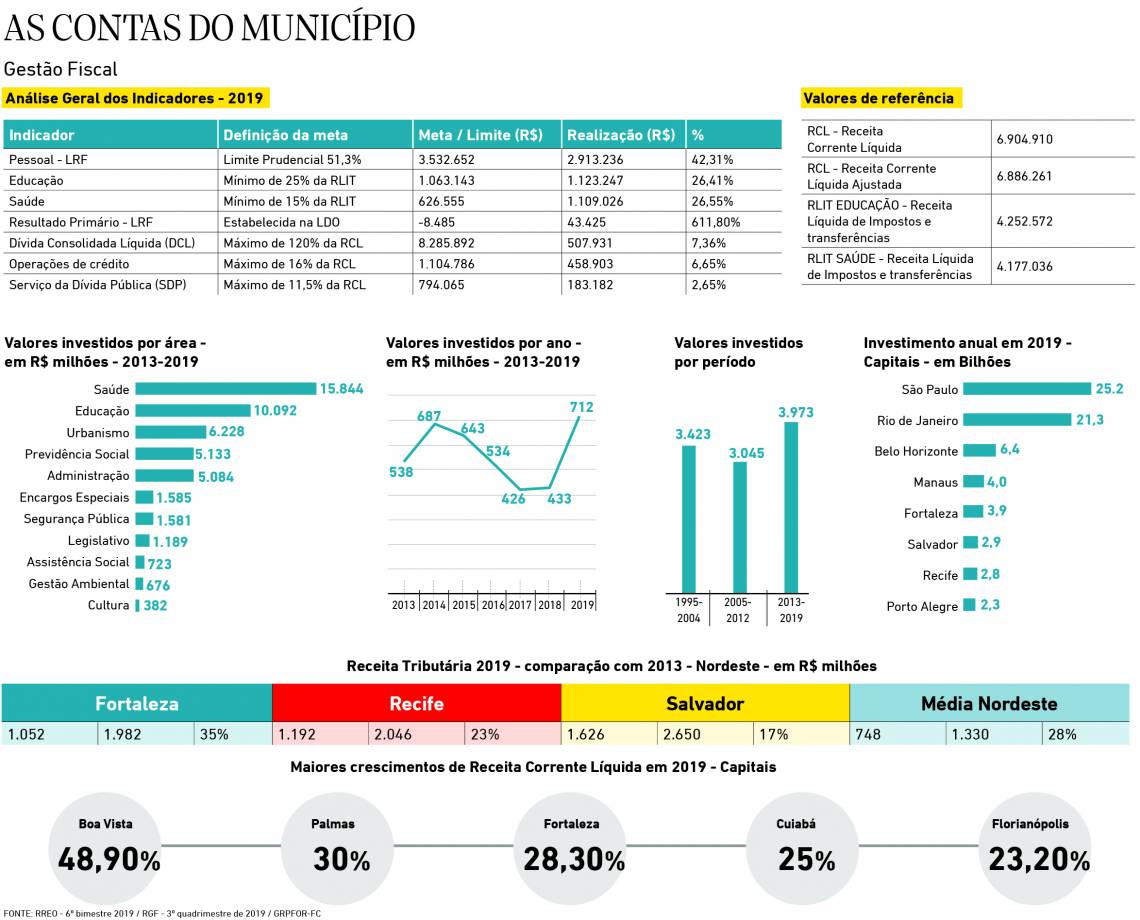 A Prefeitura de Fortaleza investiu R$ 712 milhões em diversas áreas neste ano. Foi o maior aporte público dos últimos 25 anos, conforme a Secretaria Municipal de Finanças (Sefin). Já os R$ 3,973 bilhões investidos entre 2013 e 2019 colocam a Cidade como a quinta que mais realizou aplicações entre as capitais brasileiras. Os dados do balanço financeiro foram apresentados em audiência pública realizada ontem no plenário da Câmara Municipal de Fortaleza (CMFor).