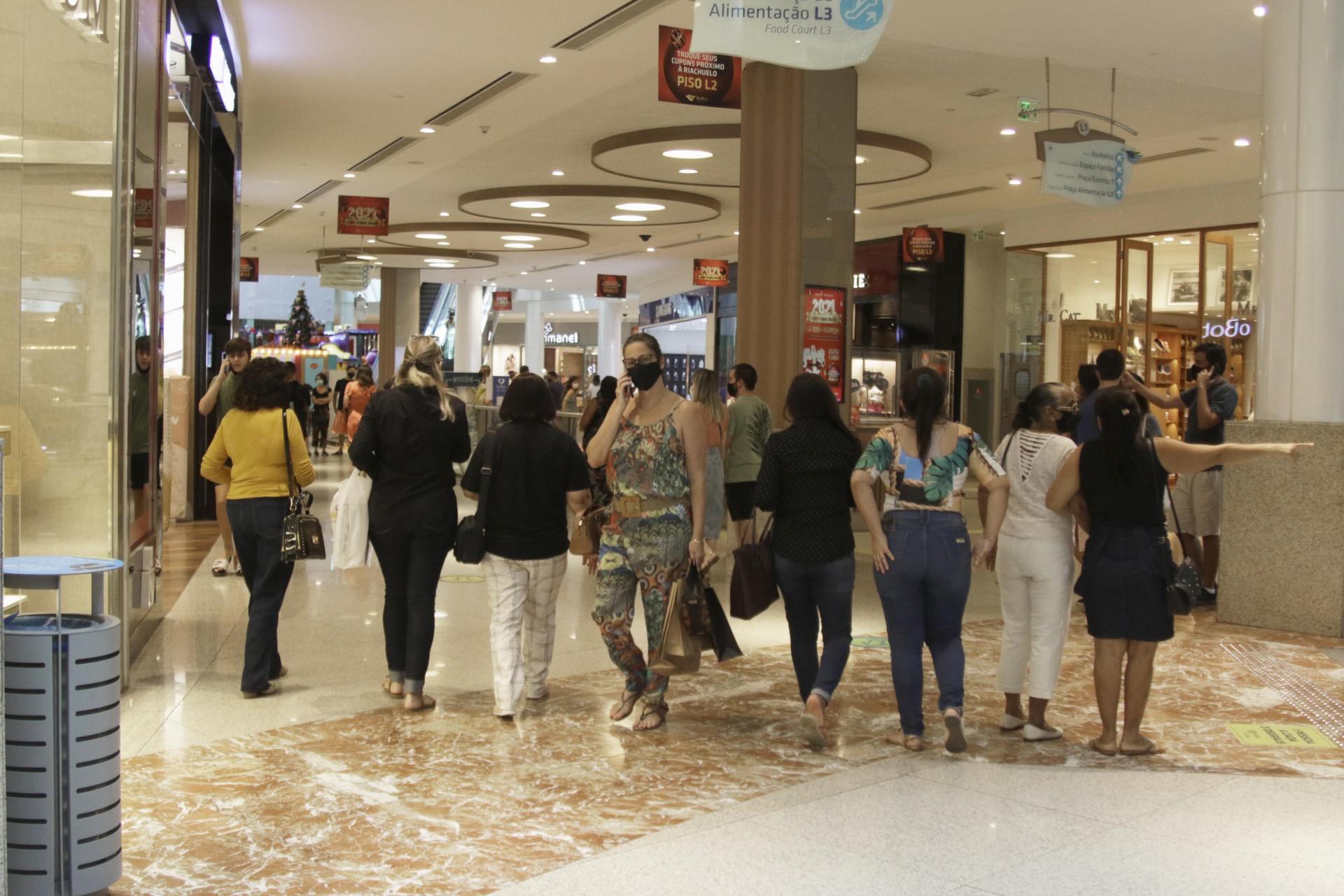 Além disso, o superintendente dos dois shoppings, Gian Franco, confirma que a partir de amanhã os empreendimentos contarão com painéis eletrônicos (monitores) que vão sinalizar a quantidade máxima de pessoas permitida e a que está presente em tempo real, conforme prevê o decreto.