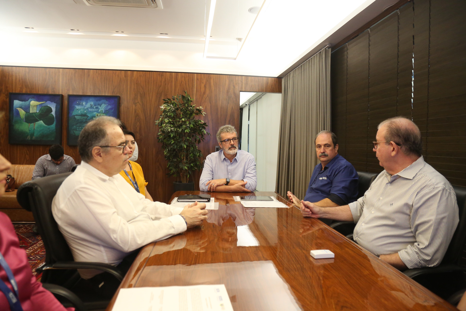 Participaram do encontro o presidente da Fiec, Ricardo Cavalcante; o diretor do Senai/CE, Paulo André Holanda; o presidente-executivo do Grupo O POVO, Dummar Neto; e o gerente-geral da FDR, Marcos Tardin.