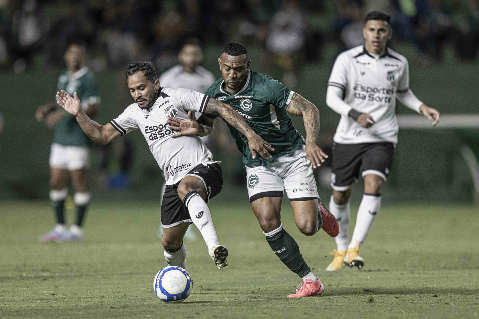 A marcação executada pelo Goiás trouxe dificuldade para o Vovô desenvolver o duelo a partir da troca de passes. A pressão em bloco alto do Esmeraldino influenciou diretamente no estilo apresentado pelo Ceará em campo, utilizando as ligações diretas para chegar ao setor ofensivo.