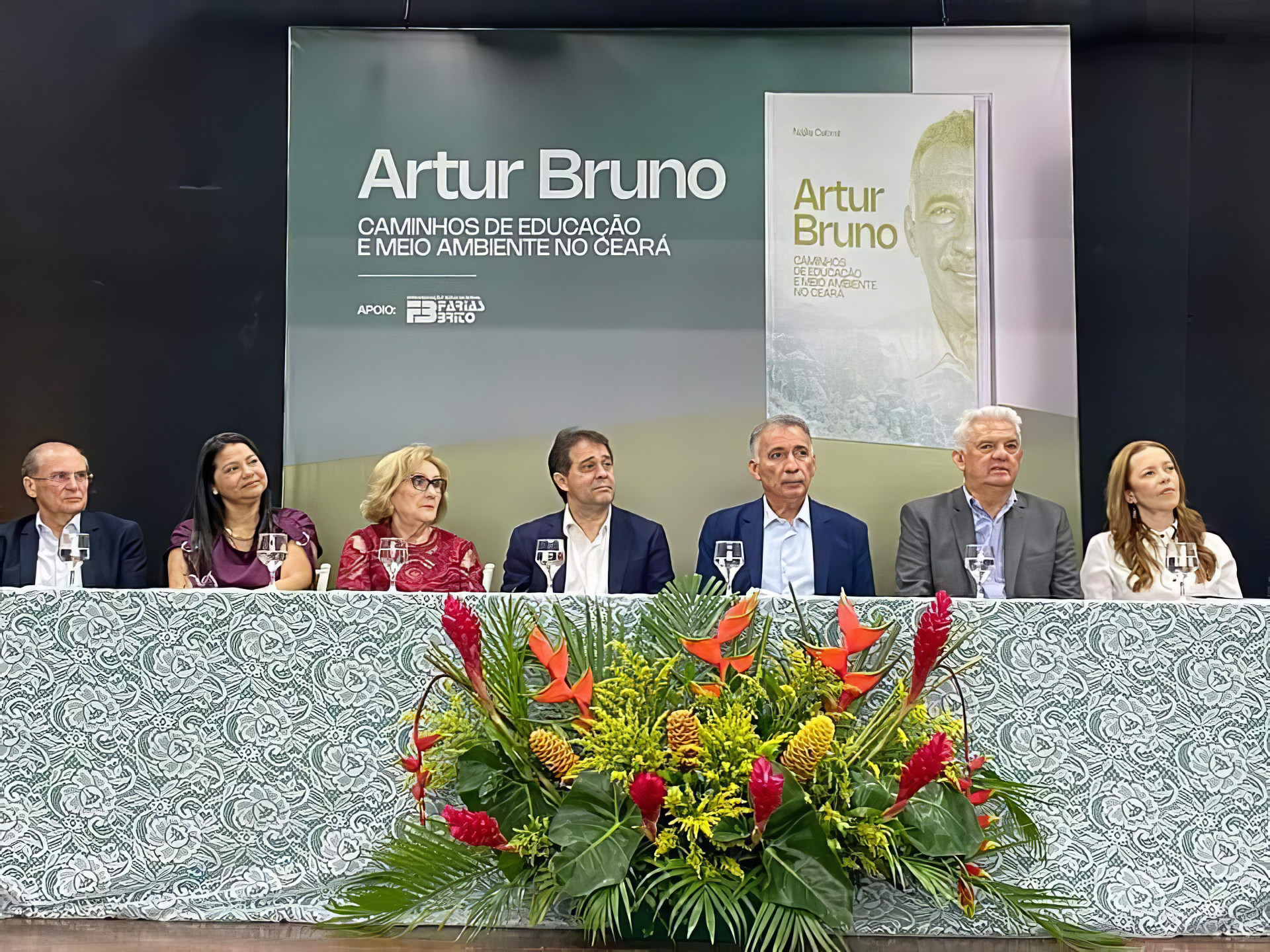 Foi lançado ontem, 7, no Teatro Nadir Saboia, no Colégio Farias Brito, o livro "Artur Bruno - Caminhos de Educação e Meio Ambiente no Ceará", da professora Nájila Cabral. O livro narra a trajetória do professor, ex-deputado estadual, ex-secretario do Meio Ambiente e atual assessor especial para Assuntos Municipais do Governo do Estado. A renda arrecadada com a venda do livro foi revertido para o programa Ceará sem Fome. Autoridades, políticos, empresários, professores e ex-alunos estiveram presentes no evento de lançamento. Artur Bruno saudou a plateia em nome do centenário dom Manuel Edmilson Cruz, bispo emérito de Limoeiro do Norte, que estava presente.