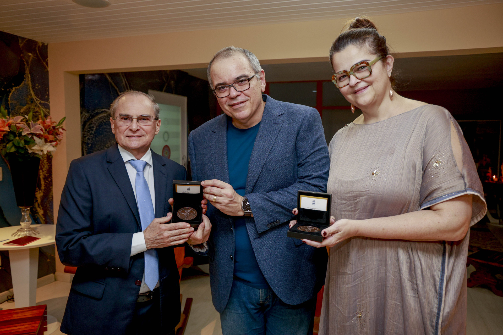 Benevides esteve nesta quarta-feira na sede do O POVO e entregou pessoalmente a medalha para Luciana Dummar e João Dummar Neto.