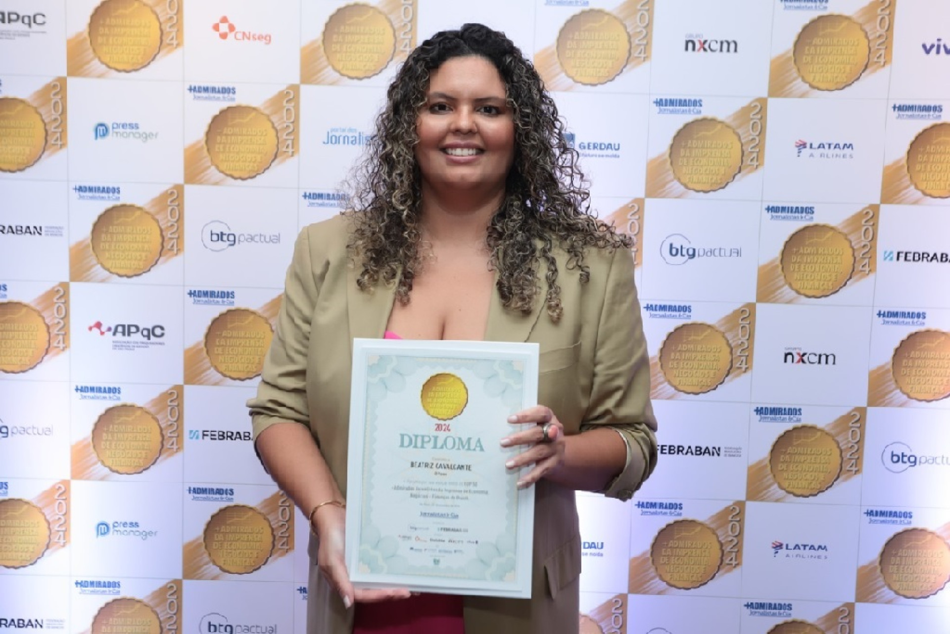 A jornalista e editora-chefe da editoria de Economia do O POVO, Beatriz Cavalcante, recebeu o prêmio dos 50 +Admirados da Imprensa de Economia, Negócios e Finanças 2024 nesta segunda-feira, 25.