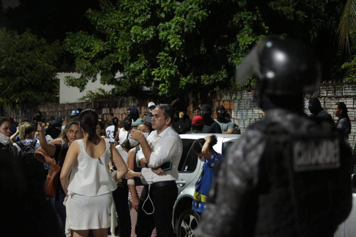 No início da noite, quando já havia numeroso grupo de agentes no local, equipes do Batalhão de Choque cercaram o perímetro, interditando as vias próximas, cujo acesso só era possível a moradores. O POVO esteve no 18º BPM até as 23 horas e acompanhou as primeiras ações de PMs e mulheres, que permaneceram na rua durante a noite, acampados. Parada, uma viatura foi feita de dormitório para crianças.