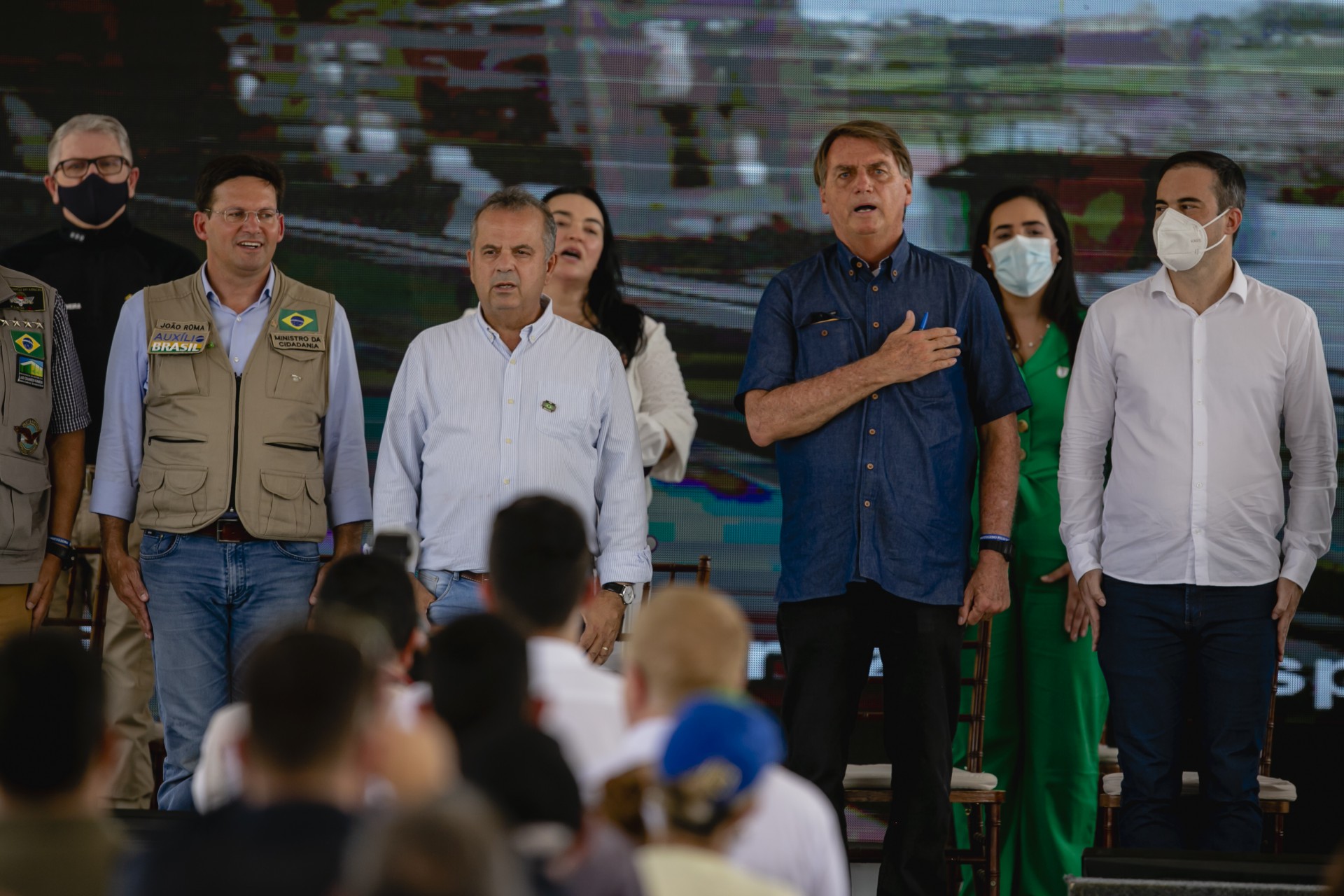 "Queria dizer que, quando atacarem o presidente, ele chame o ministro João Roma pra falar do Auxílio Brasil. Quando vier outro ataque, chame o ministro Rogério Marinho, que ele falará das águas do rio São Francisco. Quando vier um ataque lá de Sobral, escale o ministro Gilson pra ele falar daquela ponte estaiada que o governo federal entrega", respondeu.