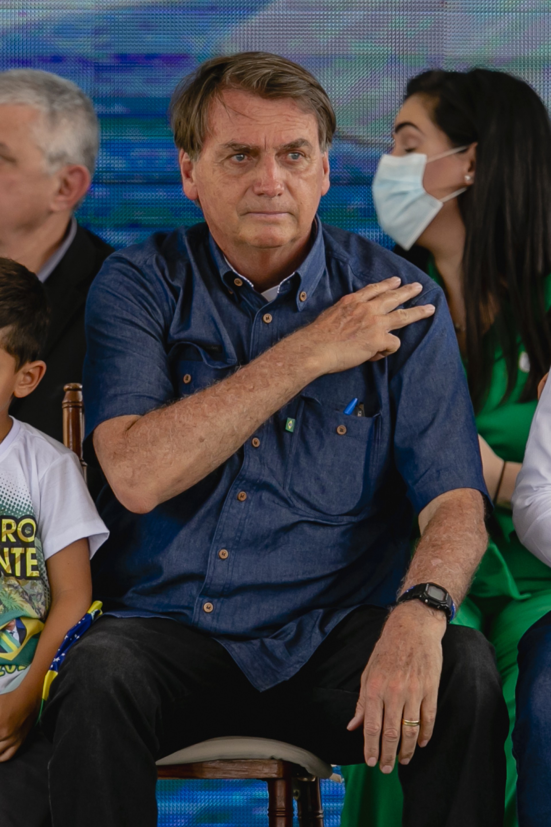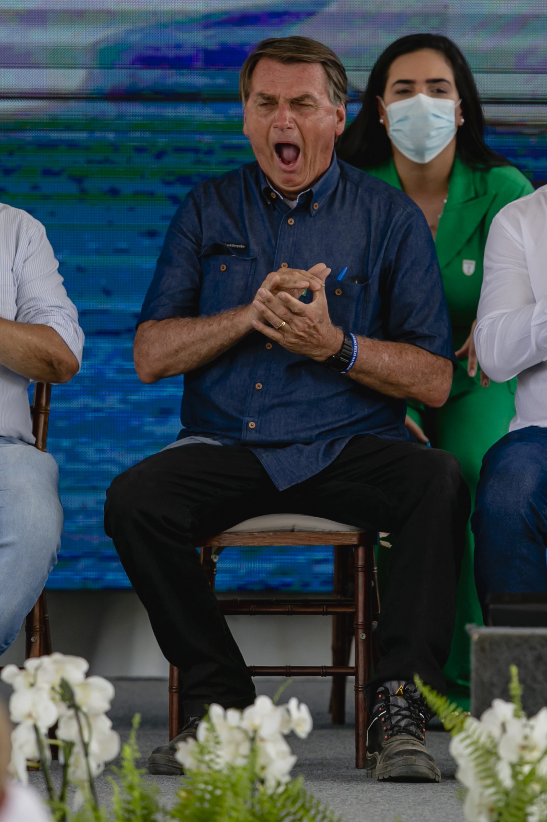 "No tocante à vacina contra a Covid", declarou o mandatário, "toda e qualquer vacina foi comprada pelo governo federal, e nós disponibilizamos para vocês de forma não obrigatória. Cada um que fizesse seu juízo e tomasse ou não a vacina, é um direito de cada um de vocês, jamais o governo vai exigir de vocês passaporte vacinal".