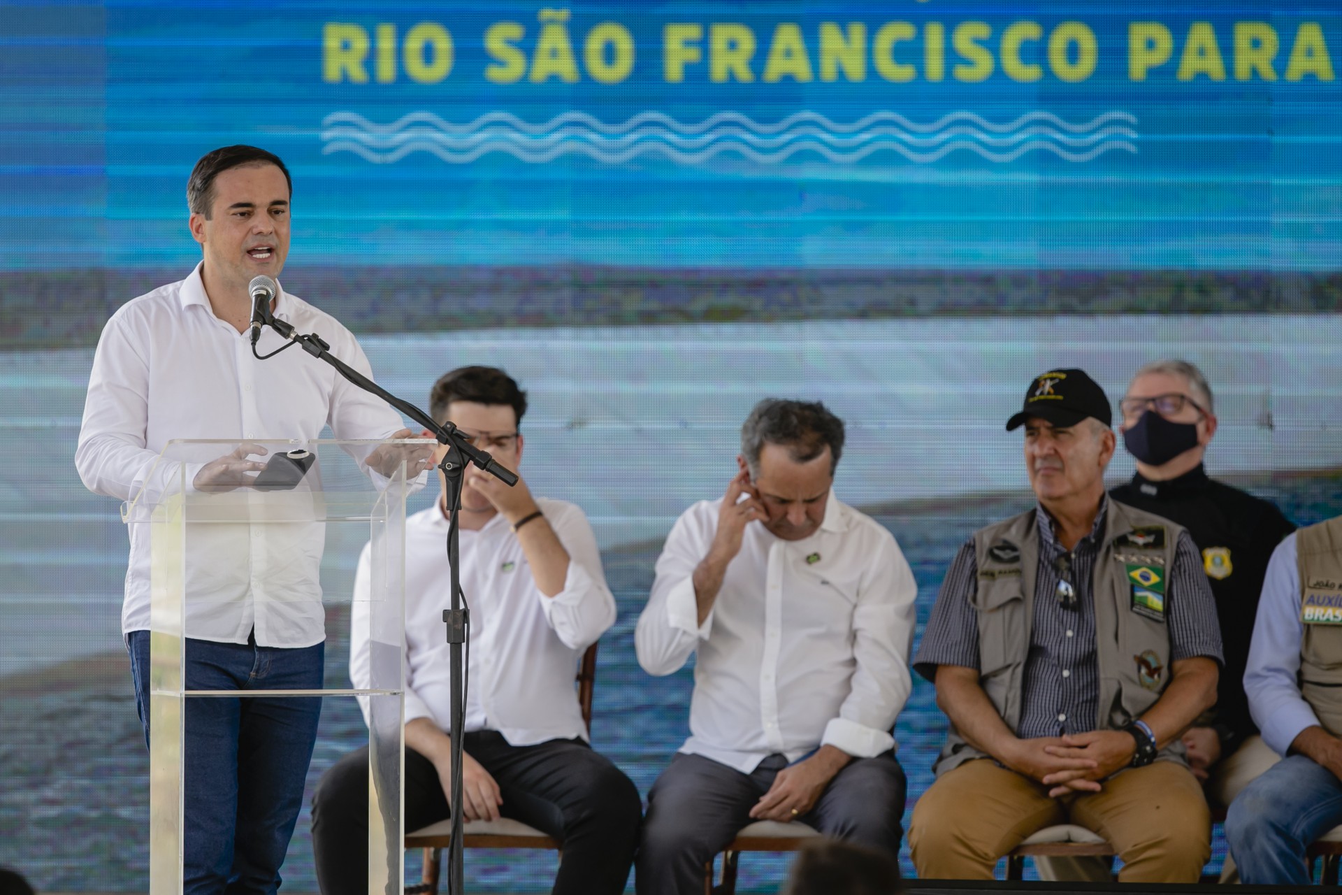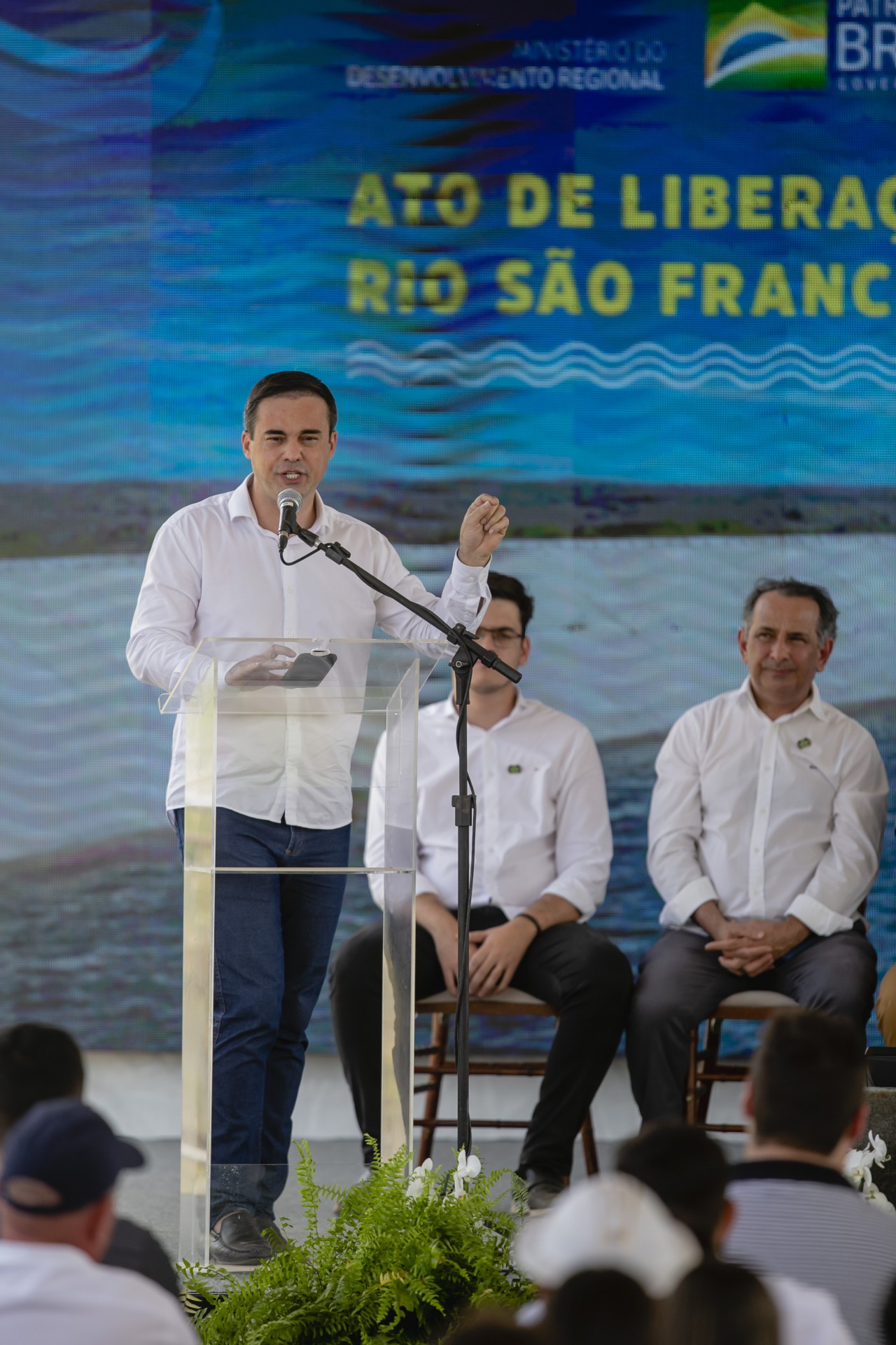 O evento de ontem marcou a retomada da liberação das águas da transposição do rio São Francisco para o Cinturão das Águas, no Ceará.