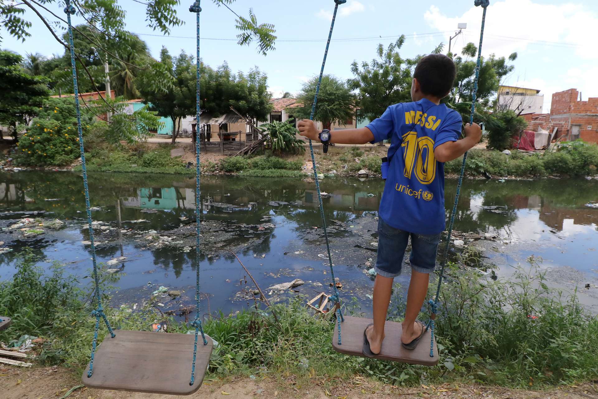 O problema de Daniel é o mesmo de quase todo o Bom Jardim: falta de saneamento, sistema que assegura o escoamento de dejetos e seu tratamento adequado, evitando descarte "in natura", além de garantir o acesso a água potável e a canalização das águas pluviais. Na vila onde vive, não se conhece nada disso. "Tá vendo aquele cano grosso?", indica uma canaleta cuja boca corre ao rio. "Por ali cai tudo que a gente faz aqui."