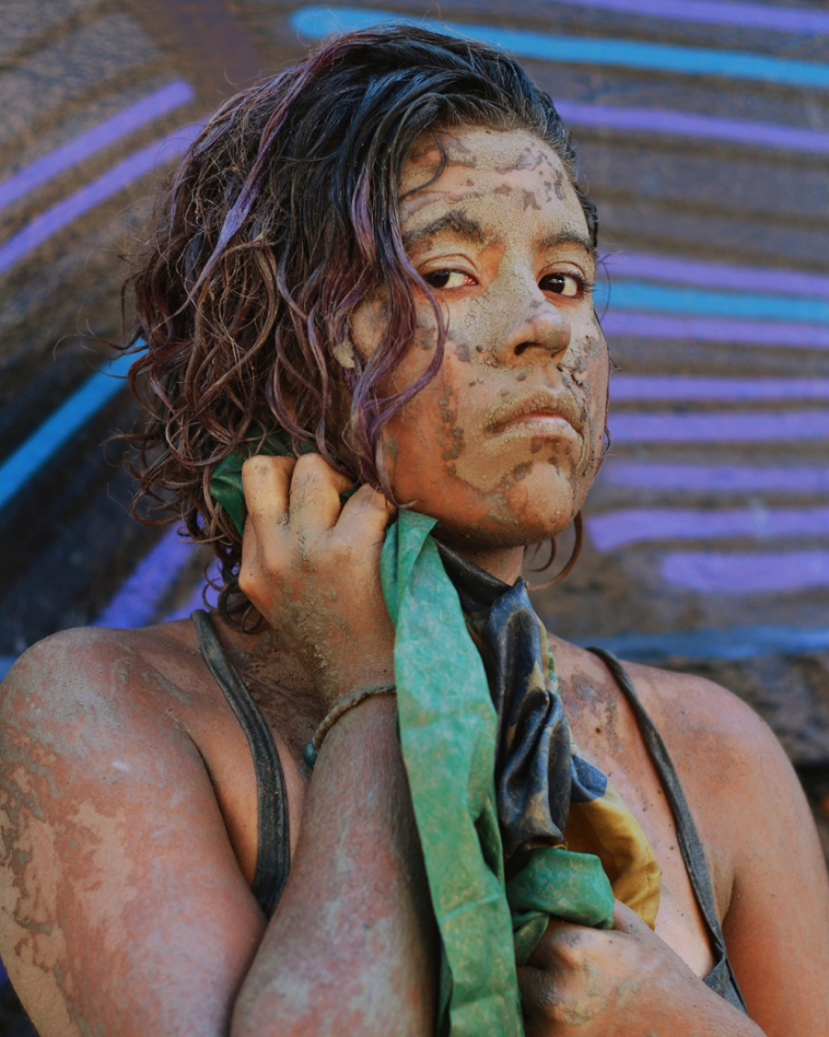 A Transposição, de Lívio do Sertão, atravessou o Ceará para compor a mostra. Residente do Cariri, o artista de 28 anos criou a foto-performance já no início de 2019, durante um passeio à Chapada do Araripe. “Na imagem, eu apareço segurando um fragmento de cano, tentando mudar o curso da água de uma bica. Eu tento modificar o caminho dessa água, levando para outro local, mas não consigo. A minha ideia é questionar esses deslocamentos de água dos rios, nascentes, barragens. Não necessariamente sendo contra ou a favor, mas questionando como e para quê isso acontece”, explica.