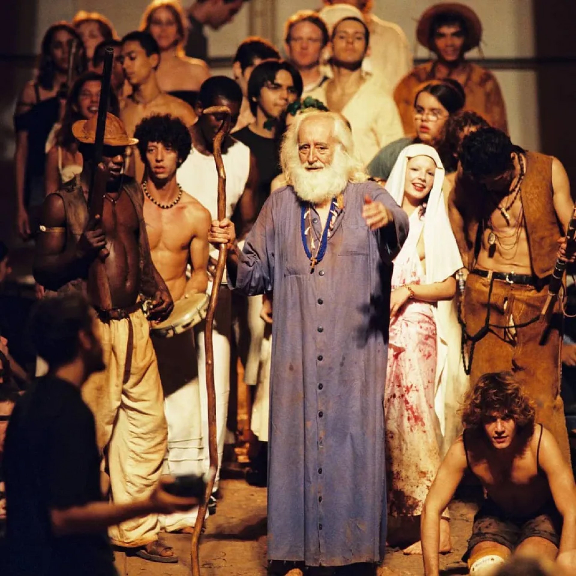 Nem mesmo Zé Celso e Antônio Conselheiro ou Euclides da Cunha se sustentam como protagonistas. O centro do espetáculo é o coro, que trabalha a plateia como seu prolongamento. O todo é como uma grande festa, uma grande diversão, embora no particular haja todos os teatros, desde as tragédias gregas, passando por Shakespeare, pelo teatro de rua, até o teatro de revista. Zé Celso rege a manifestação da multidão às vezes de dentro, como um mestre de reisado, às vezes na beira do campo, como um treinador de futebol. Todo o elenco do Oficina trabalha de olho em cada pessoa da plateia, trocando energias, observando seus mínimos movimentos. Improvisa, reage, mexe com o público, por isso, cada apresentação é imprevisível, diferente e única.