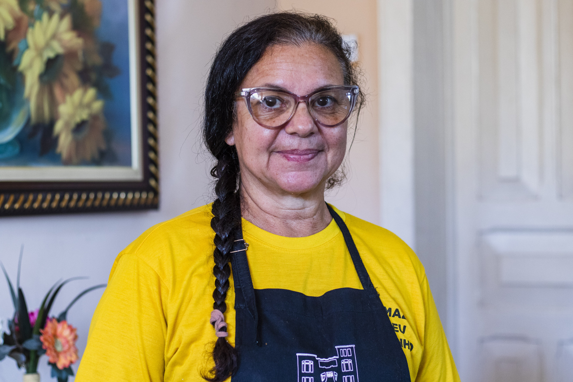 Denismara Pereira Diniz, 53 anos, é filha do famoso escultor Mestre Bibi — responsável por esculpir a estátua de São Francisco de Chagas, em Canindé — e desde jovem teve a prática de conservação e restauração em sua vida, trabalhando com imagens em igrejas.
