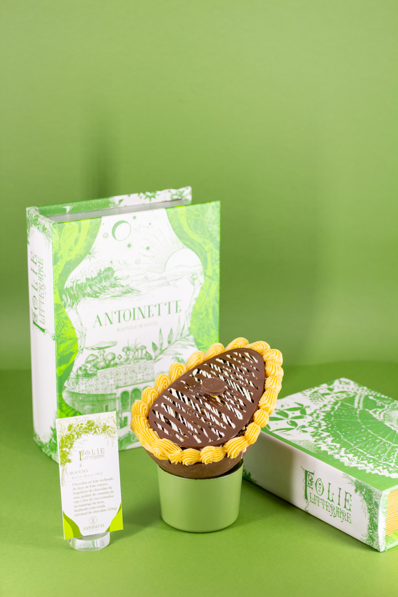 Para quem aprecia, além do sabor, o conceito e a criatividade quando busca por ovos de Páscoa, a Antoinette Doces preparou uma coleção com quatro variedades inspiradas na literatura. "Alice no País das Maravilhas, "Orgulho e Preconceito", "O Pequeno Príncipe" e "Iracema" são os produtos de lançamento deste ano.