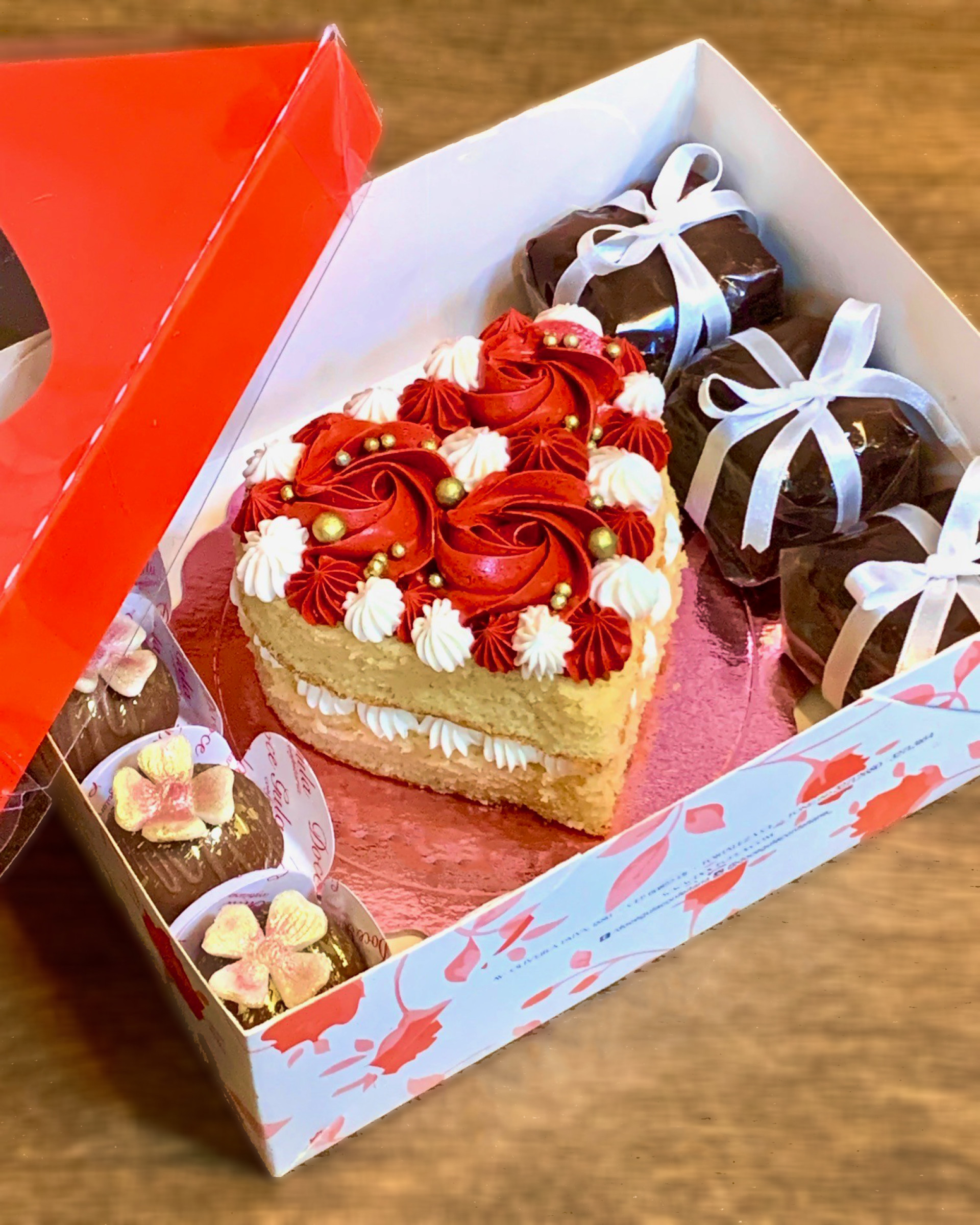 Se você deseja presentear com uma torta doce ou bolos decorados, a Doce Gula oferece seis modelos de decorações para tortas, que podem ter a massa branca ou de chocolate. Para o recheio, podem ser escolhidas três opções dentre as 21 disponíveis — como crocante, brigadeiro e geleia de morango. A torta para até 20 pessoas custa R$ 222,90. Há também a Caixa Surpresa, com mini bolo coração, três brownies e 4 quatro trufas, custando R$ 79. Os pedidos podem ser feitos via WhatsApp.