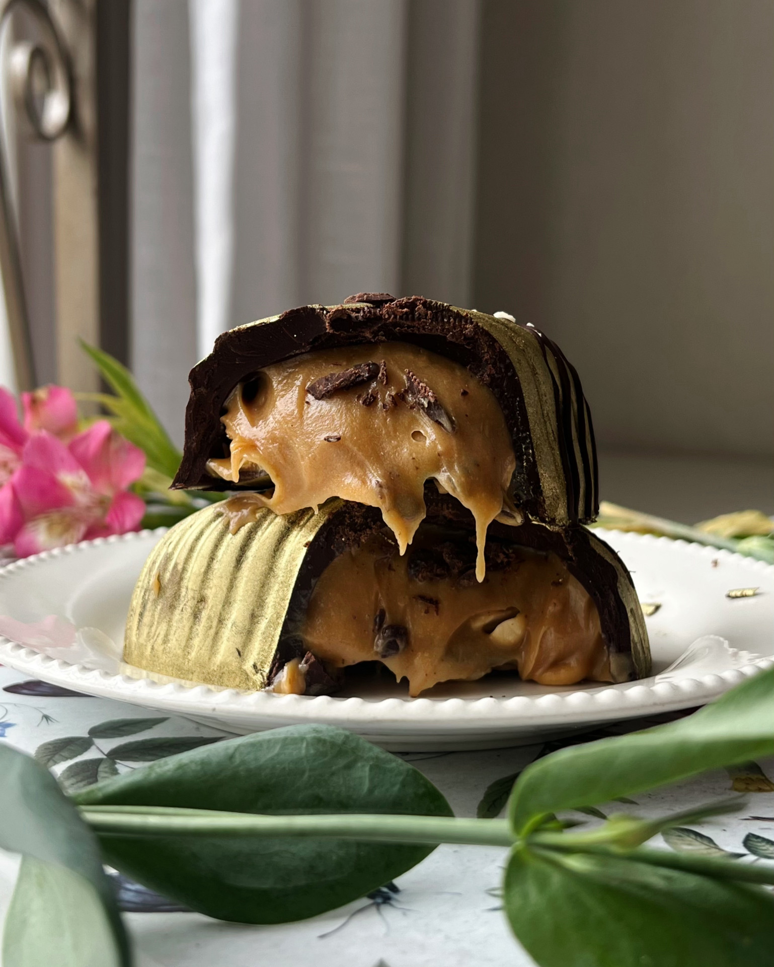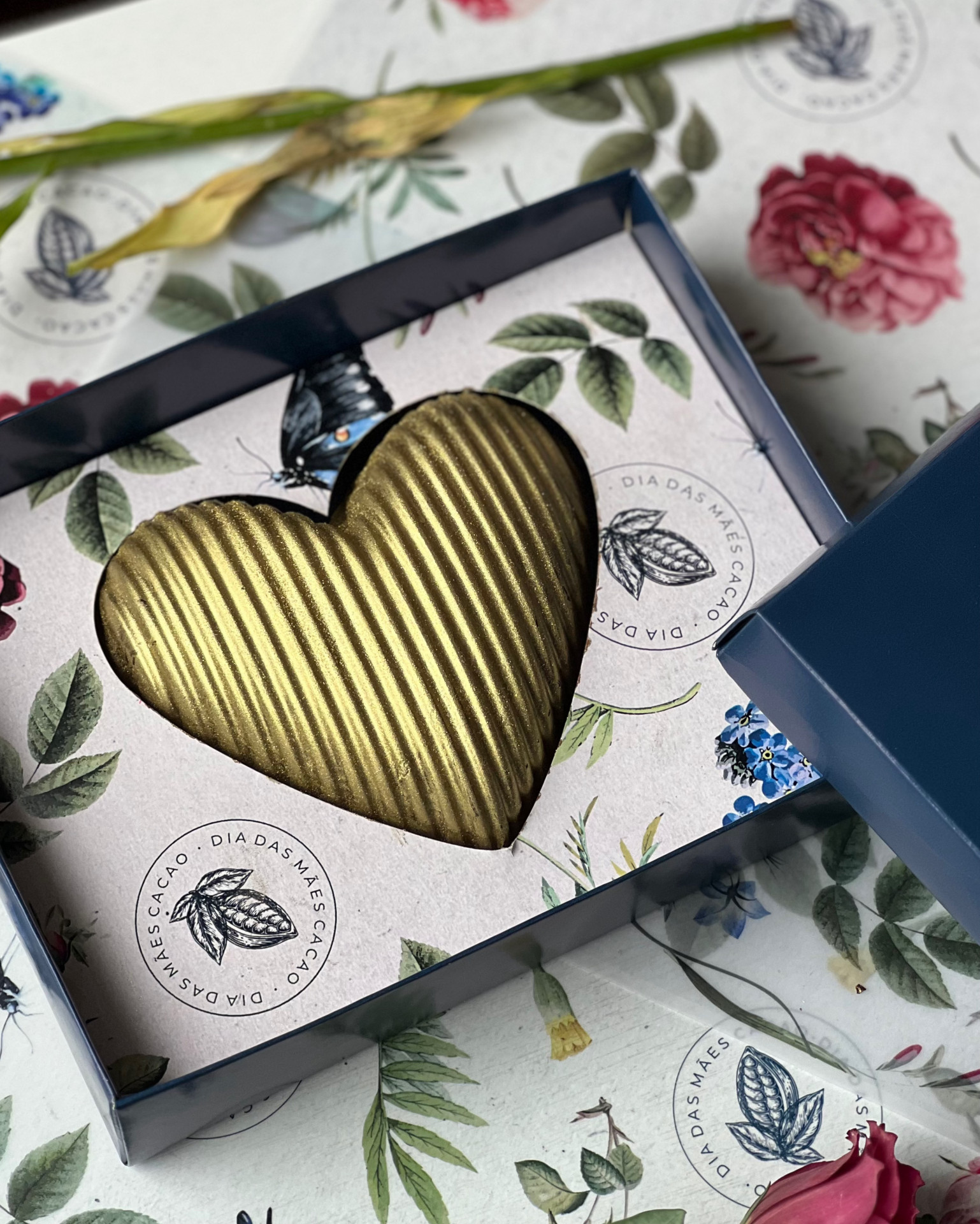 Para as mamães que não podem comer glúten ou lactose, ou procuram opções com menos açúcares, os Corações de Chocolate da Cacao Confeitaria Saudável são uma ótima escolha. São duas opções de recheios: caramel (caramelo e amendoim) e casadinho. O Lovehearts tem a casca feita com chocolate 70% e custa R$ 89,90.