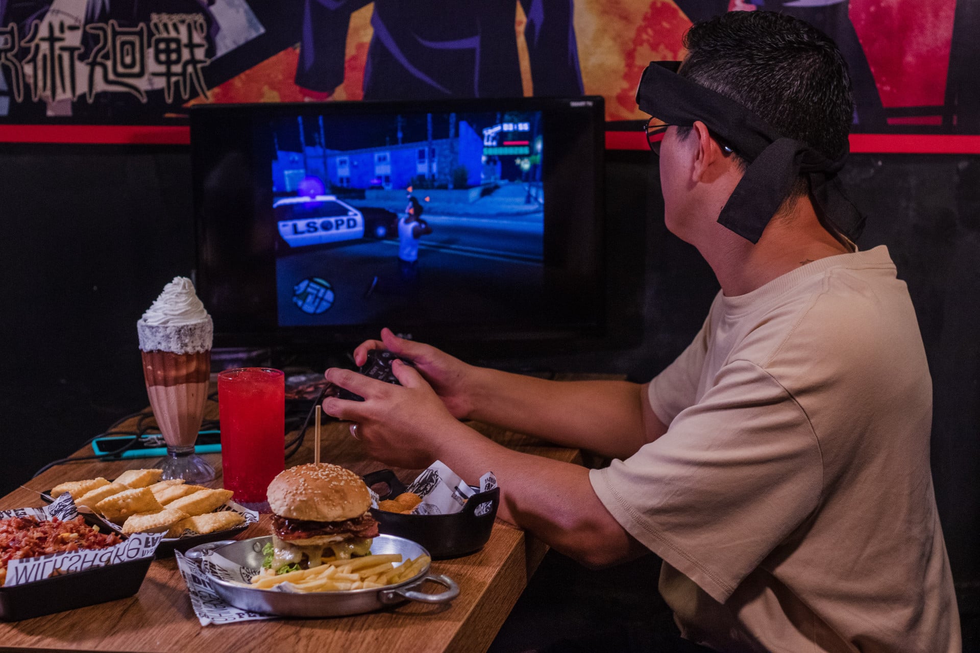 O cardápio é todo digital e funciona a partir de um tablet disponível em cada mesa, tabuleiro de coxinhas, batata suprema, burguer de Naruto, Sonic e resident evil são os mais pedidos.