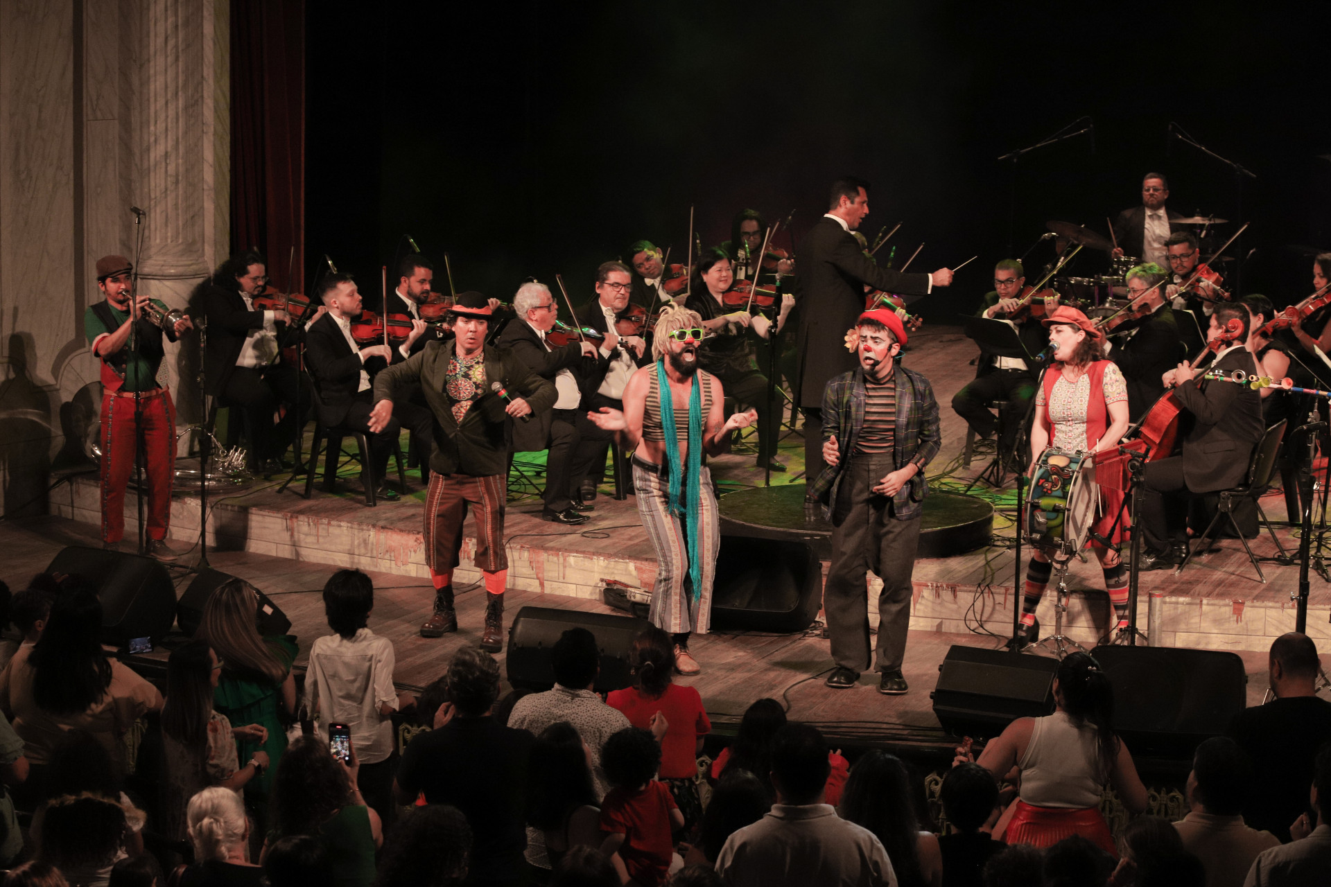 Sob a regência do maestro Arley França, a OCB divide o palco com o grupo cearense Dona Zefinha, conhecido por unir música, teatro e palhaçaria de forma inventiva e bem-humorada. Os palhaços Bufão, Panfeto e Pafim conduzem a narrativa com poesia e comicidade, criando um espetáculo que emociona, diverte e aproxima.