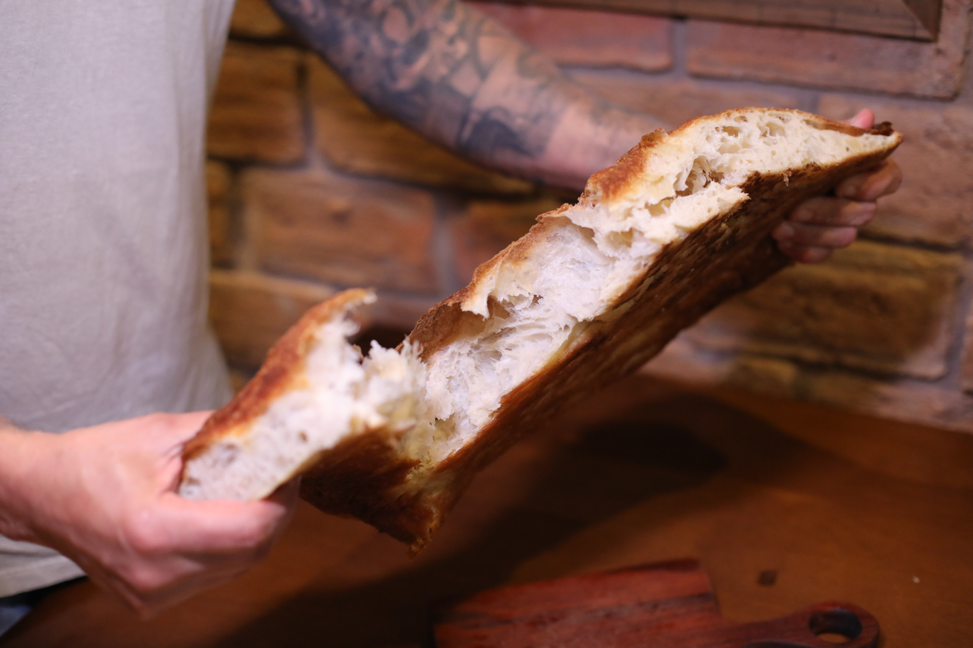 "Diferente das fermentações industriais, o processo natural pode levar de 24 a 48 horas, dependendo da temperatura e da umidade. Esse tempo respeita o desenvolvimento do fermento vivo e resulta em um pão mais leve, saboroso, com melhor digestibilidade e maior durabilidade sem aditivos", detalha Dayson Rita, sócio da Benedeto Schiacciata e chef de panificação.