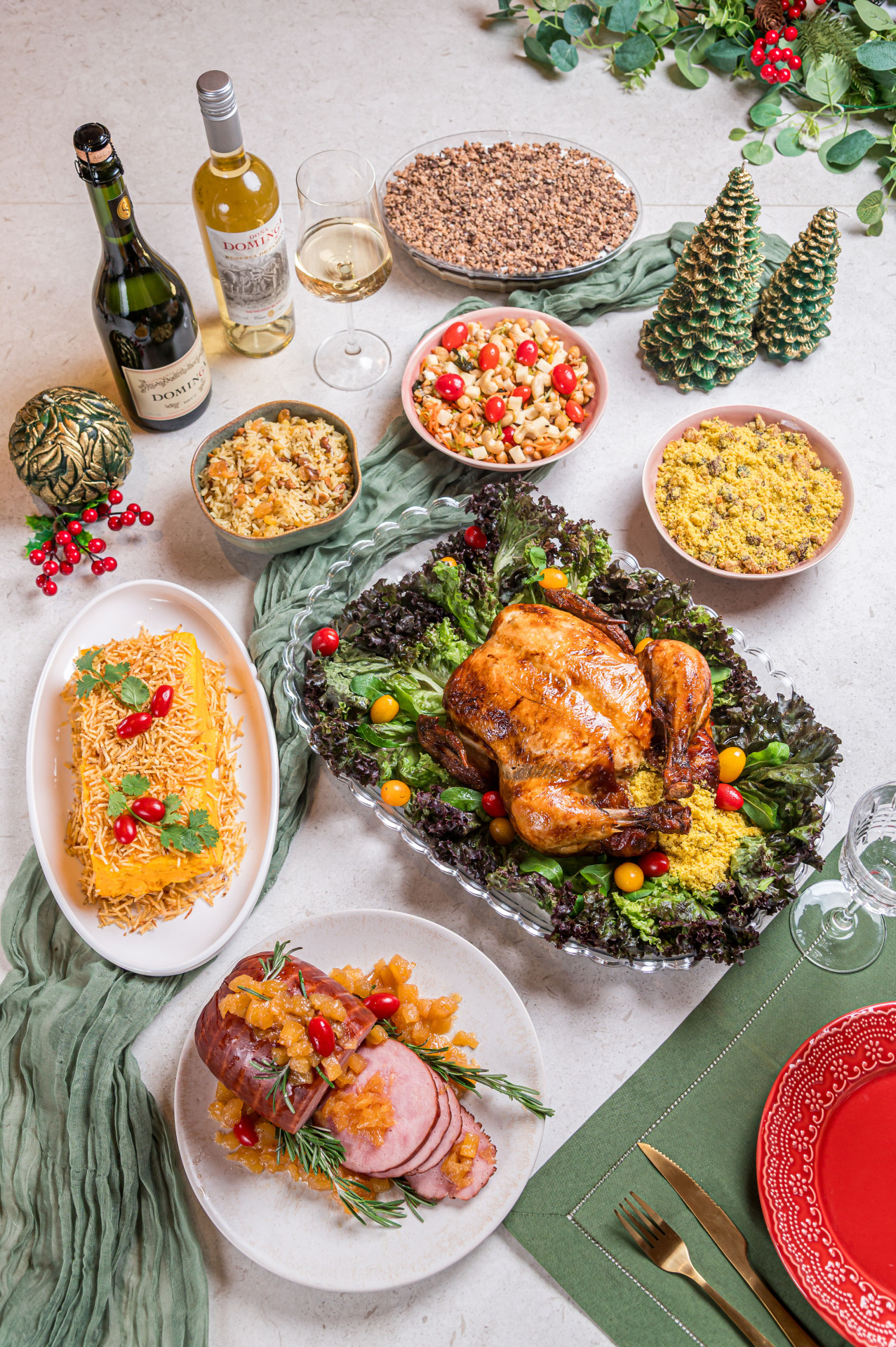 A ceia de lombo suíno contém bacon, arroz de amêndoas com cenoura, farofa crocante com coco, legumes de Natal, quarteto de molhos, trio de pães e panetone de doce de leite. Já o kit de Peixe ao Mix de Legumes traz arroz de Dubai, farofa, batata gratinada, quarteto de molhos, trio de pães e panetone de doce de leite.