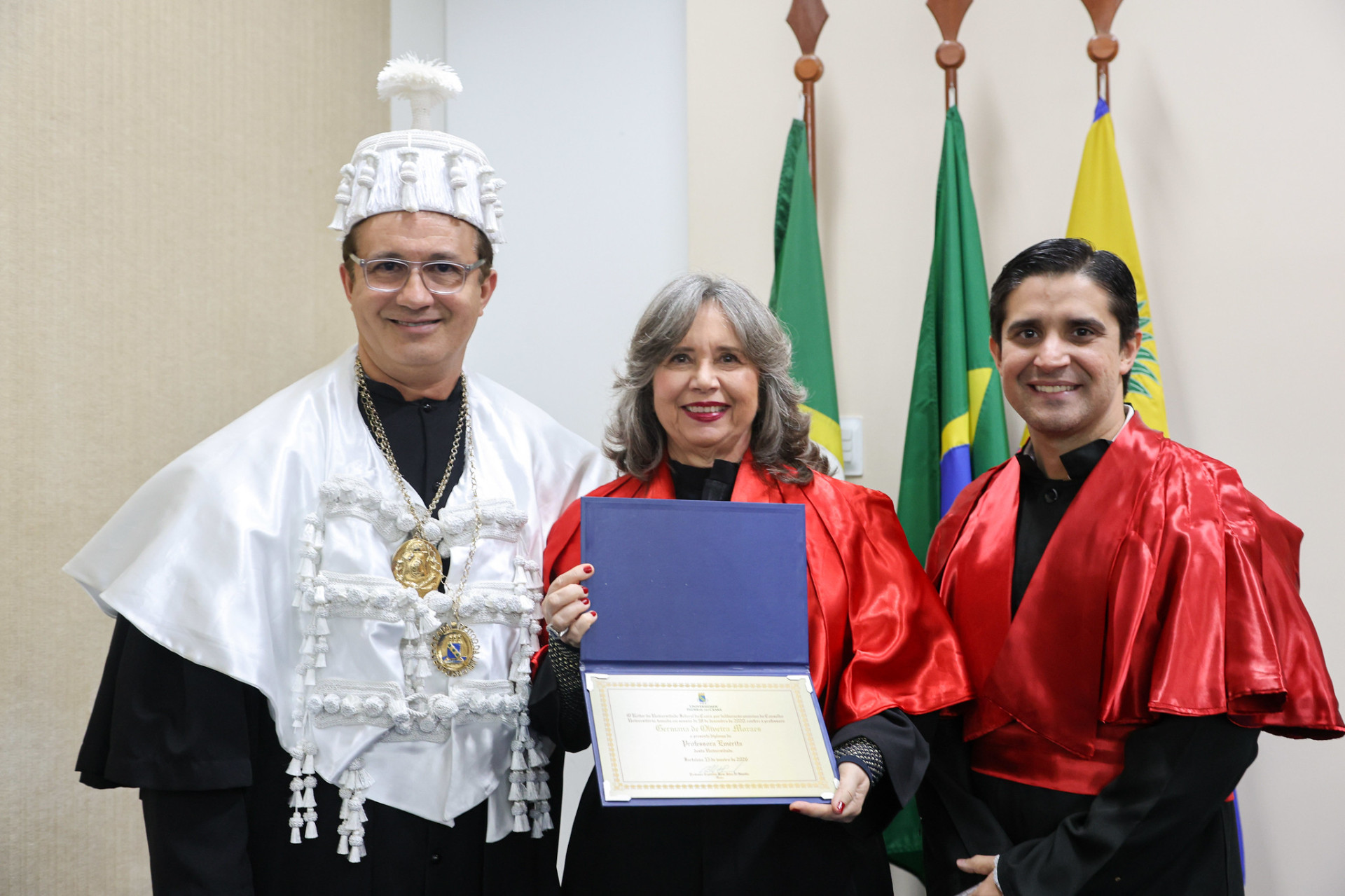 Professora aposentada de Direito Constitucional da UFC, a desembargadora federal Germana de Oliveira Moraes (TRF-5) recebeu justo reconhecimento pela dedicação e serviços prestados como docente da Universidade. Noite da última quinta-feira, no auditório da Reitoria, ela foi homenageada com o Título de Professora Emérita da instituição. Registros...