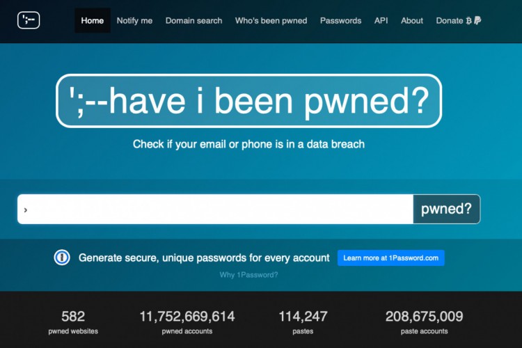 Screenshot do site "Have I Been Pwned", que monitora vazamento de dados no mundo todo