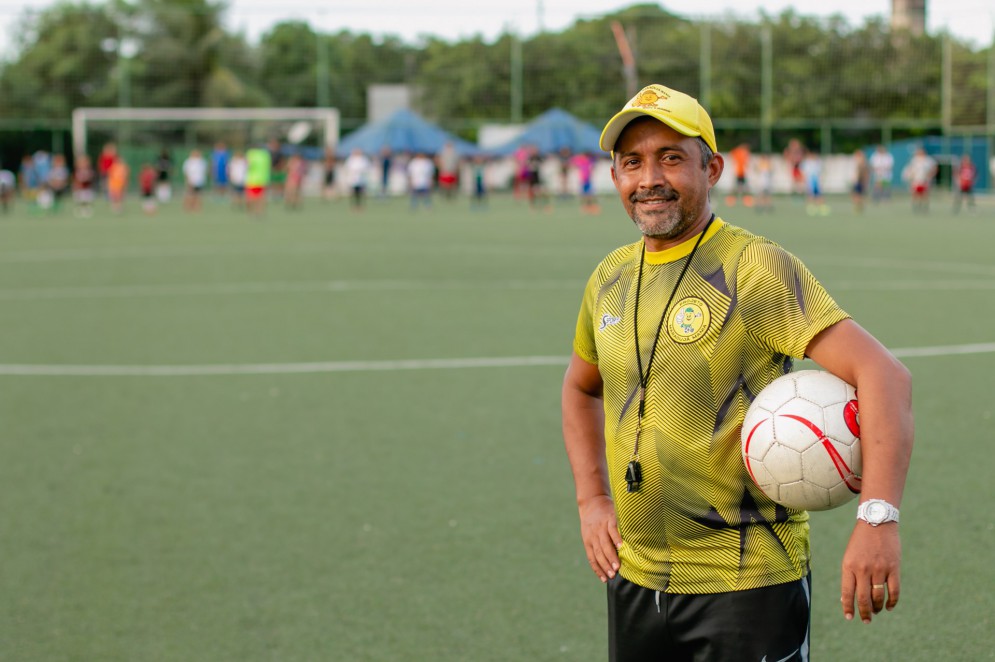 Evandro trabalha com projetos sociais de forma voluntária há mais de 20 anos. Atualmente, ele tem 500 inscritos, entre crianças e adolescentes. A cada treino, centenas de jovens se espalham no extenso campo. A empolgação de meninos e meninas dentro das quatro linhas é nítida pelo semblante. Nas arquibancadas do lado fora, parentes observam atentamente.