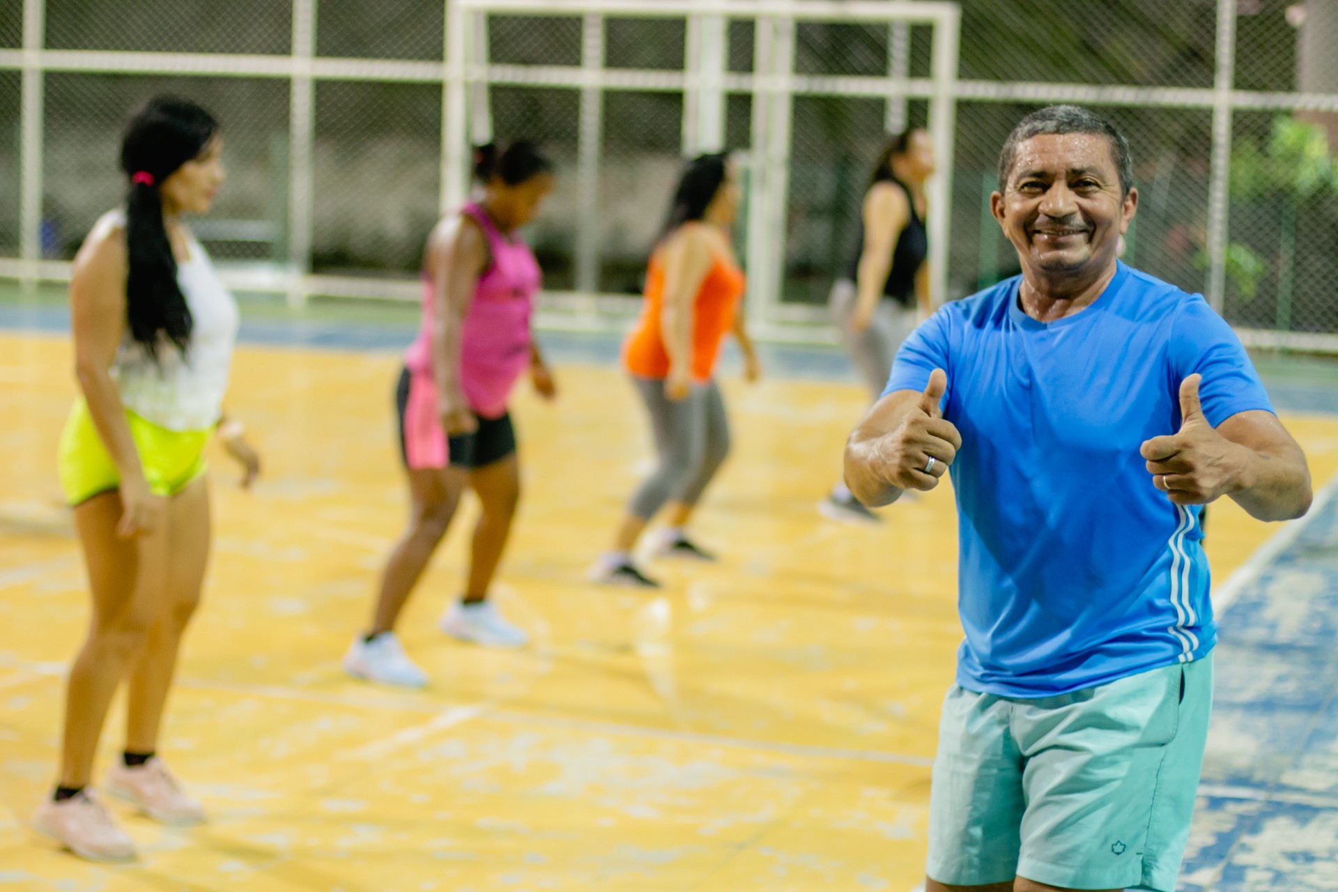 A estrutura da praça da Jurema, na Caucaia, que inclui a areninha, quadra poliesportiva, academia ao ar livre e brinquedos para crianças, permitiu uma nova rotina de saúde na região. Uma das opções para quem busca sair do sedentarismo é a dança gratuita no espaço.
