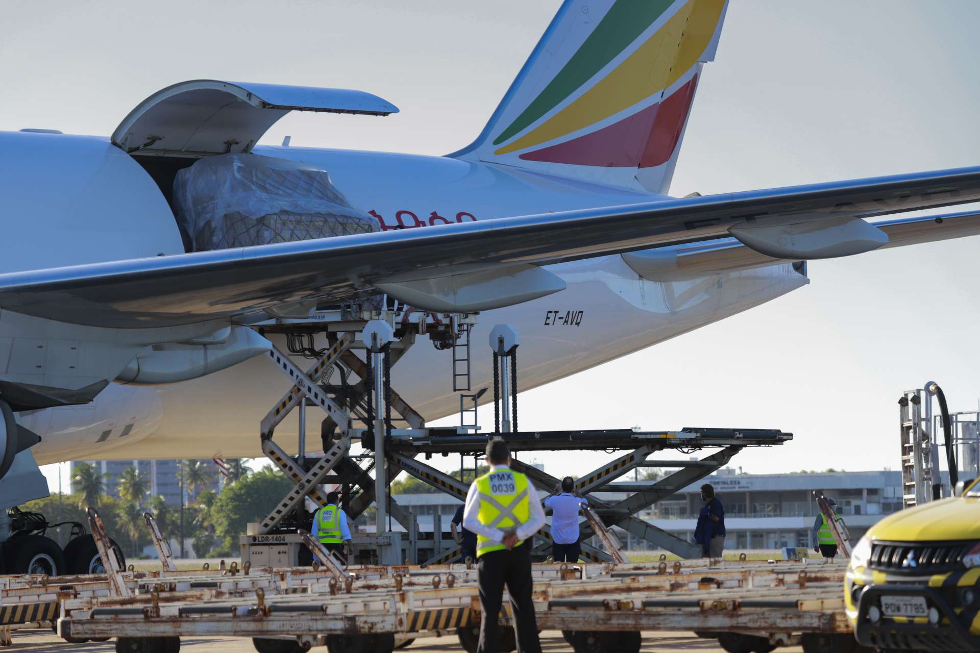 A aeronave utilizada foi o Boeing 777. Com aproximadamente 1,2 mil tonelada, a cabine de passageiros foi utilizada para acomodar as 5.800 caixas, além do porão do avião. De acordo com o Ministério da Infraestrutura, ainda em março, um plano de logística e distribuição, em apoio ao Ministério da Saúde e aos governos estaduais e municipais, foi desenvolvido e abrangeu ações para viabilizar a chegada do material importado, a articulação com órgãos governamentais que atuam nos aeroportos para prioridade no desembaraço aduaneiro e o apoio na distribuição dos equipamentos nos estados.